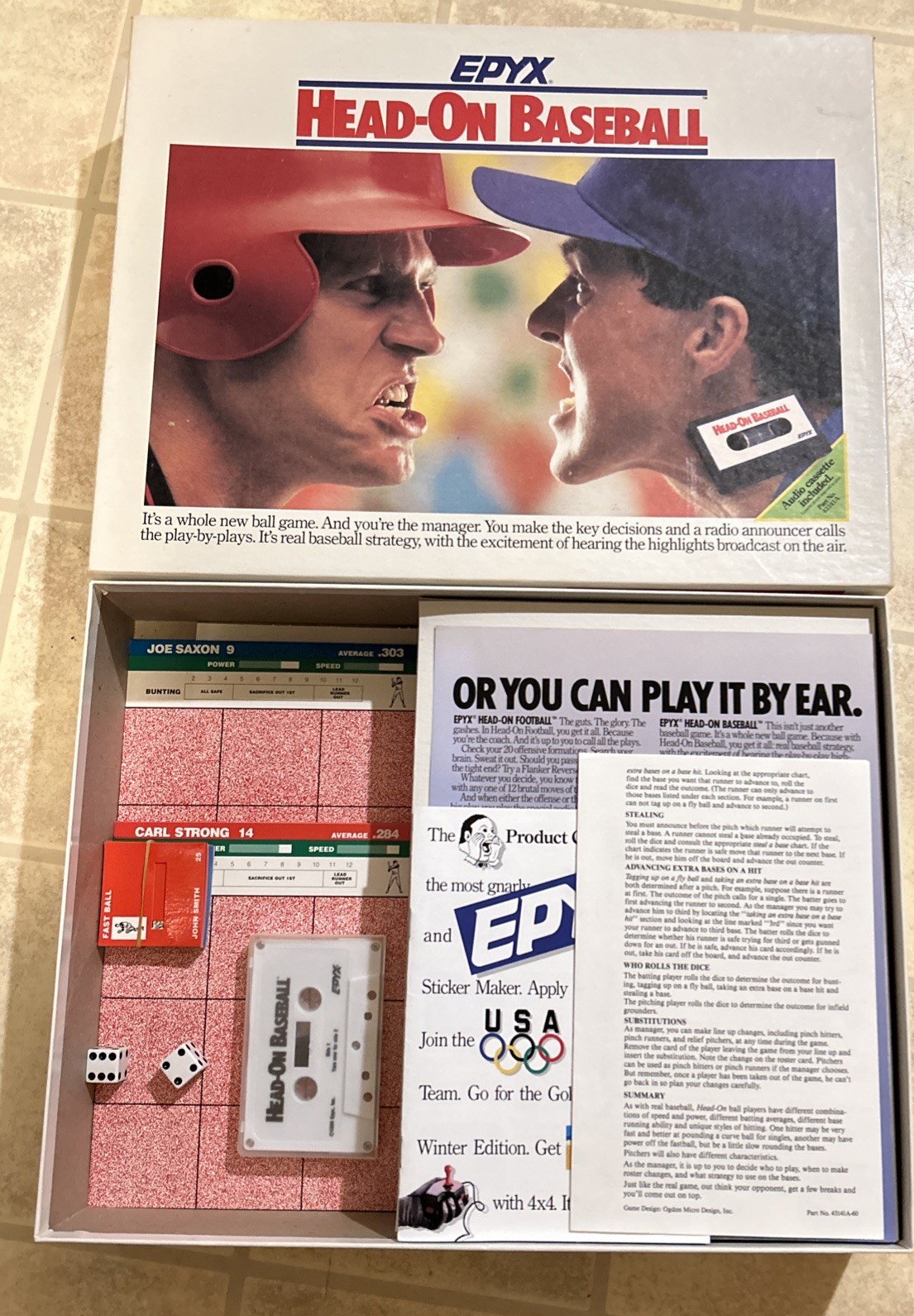 Vintage 1985 Epyx Head-On Baseball Board Game w/ Audio Cassette Dice Strategy