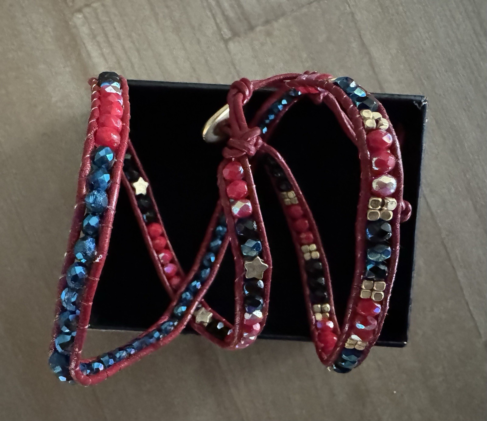 как выглядит Gorgeous Handmade Red Leather 3 Strands Wrap Bracelet Decorated With Gemstone фото