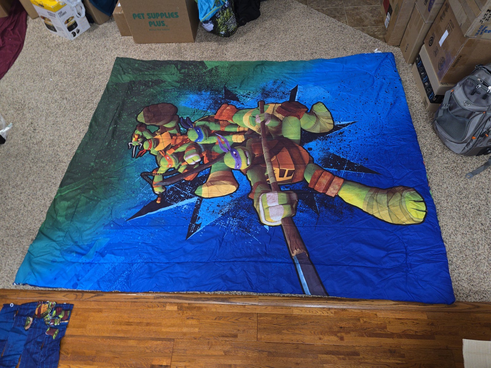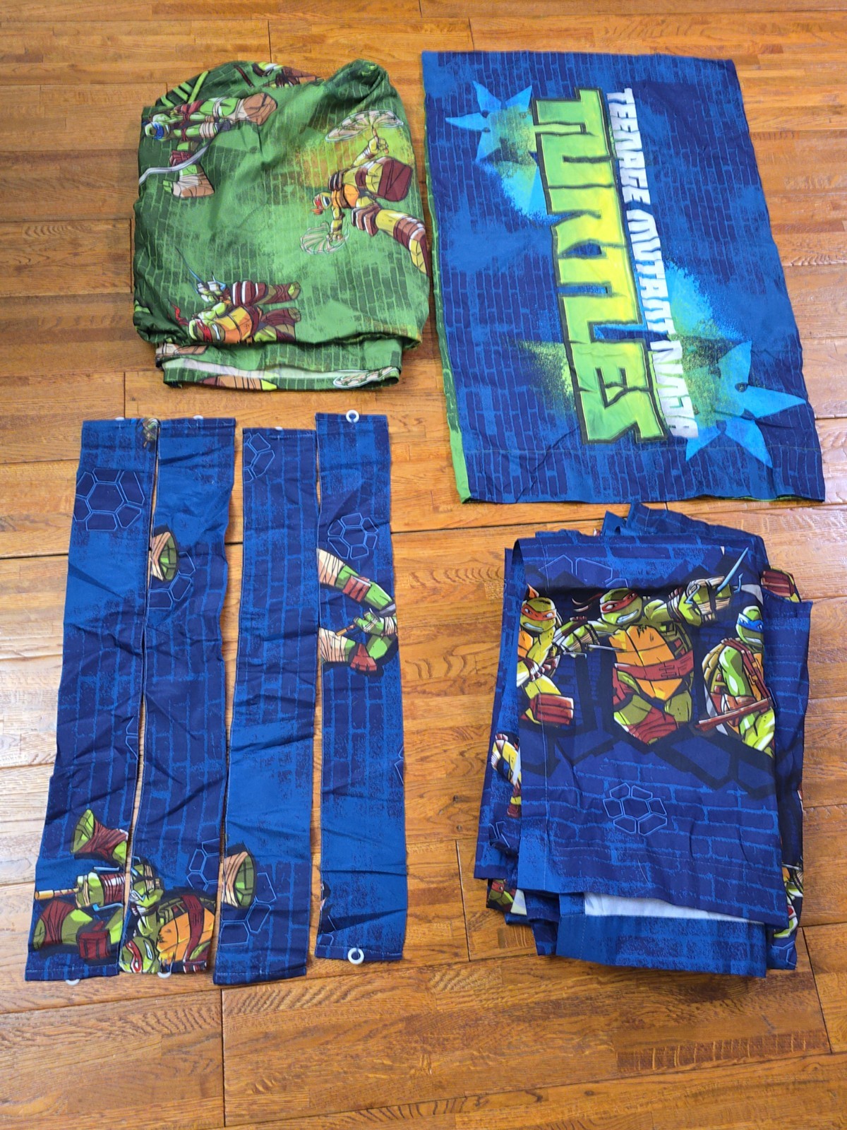 TMNT Twin/Full Comforter Flat Sheet 4 Curtain Panels Tie Backs Pillow Case