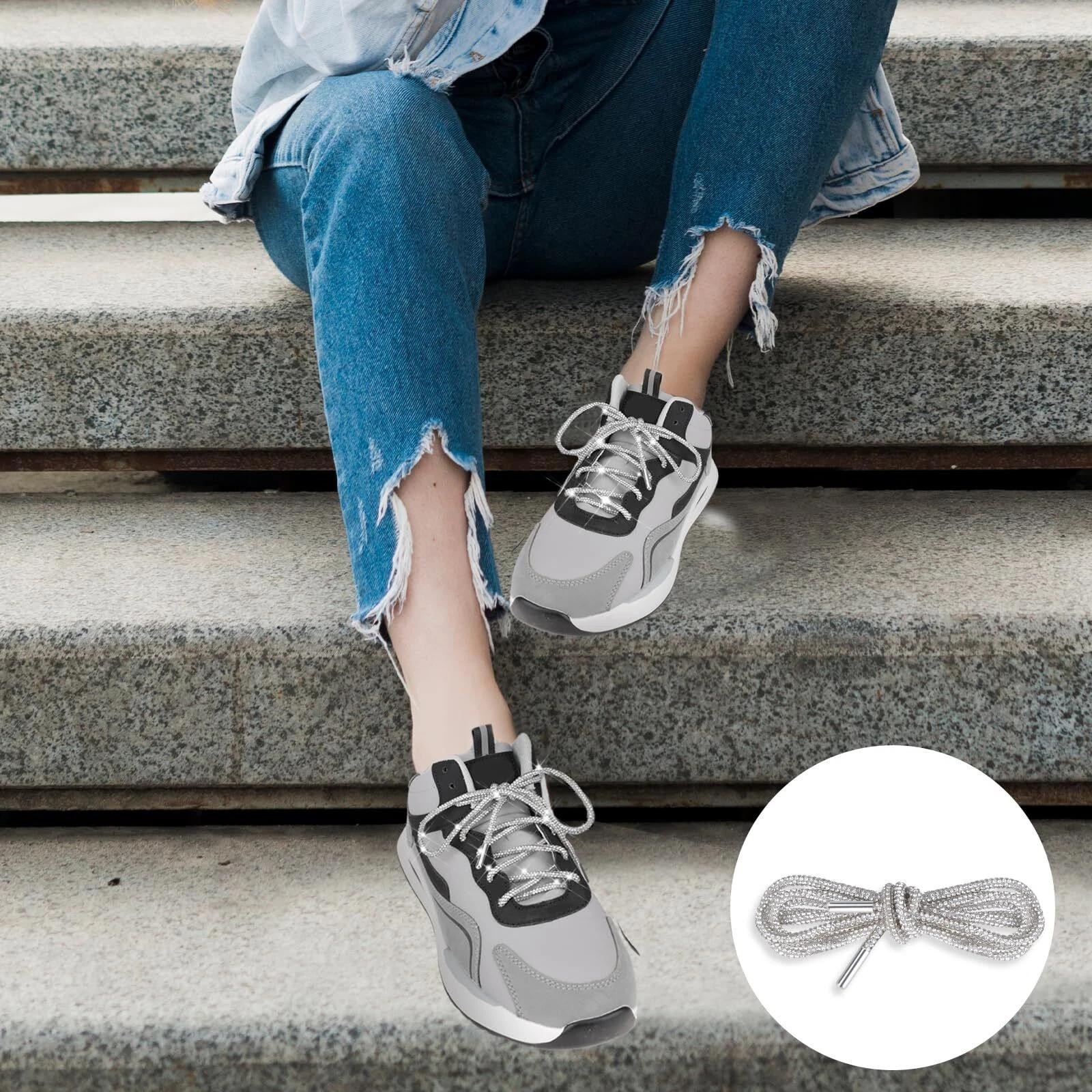 2 Pcs Glitter Shoe Laces Bling Rope Shiny Rhinestone String for Shoes Sweatpants