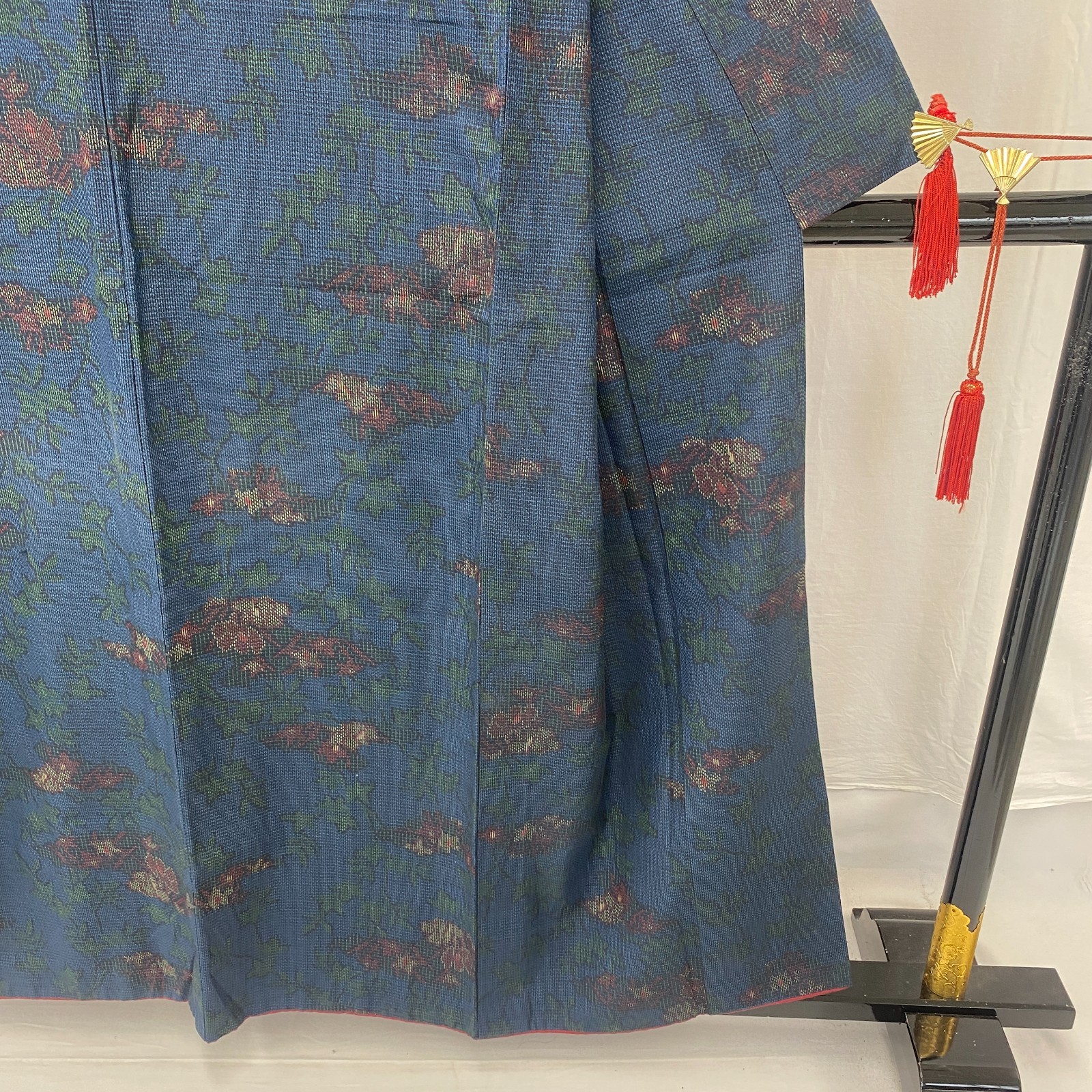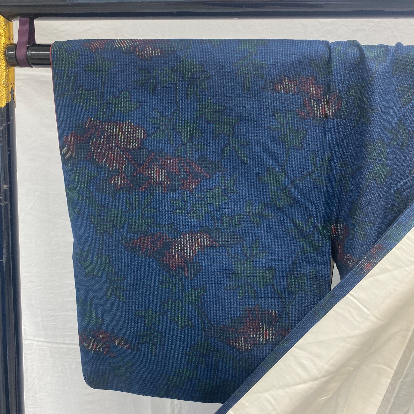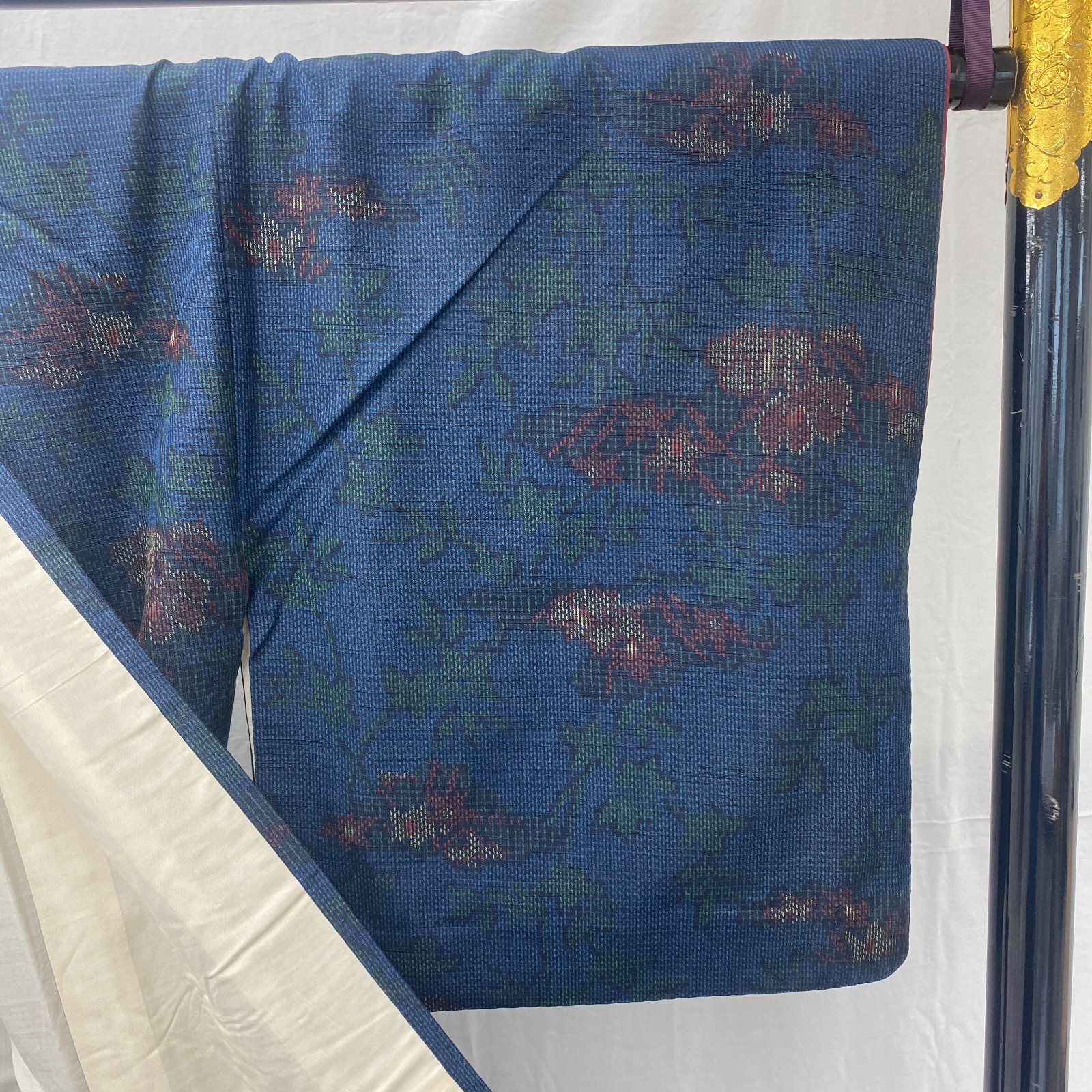 как выглядит Japanese Vintage Kimono Silk Blue Oshima Traditional Authentic Length 61 in фото