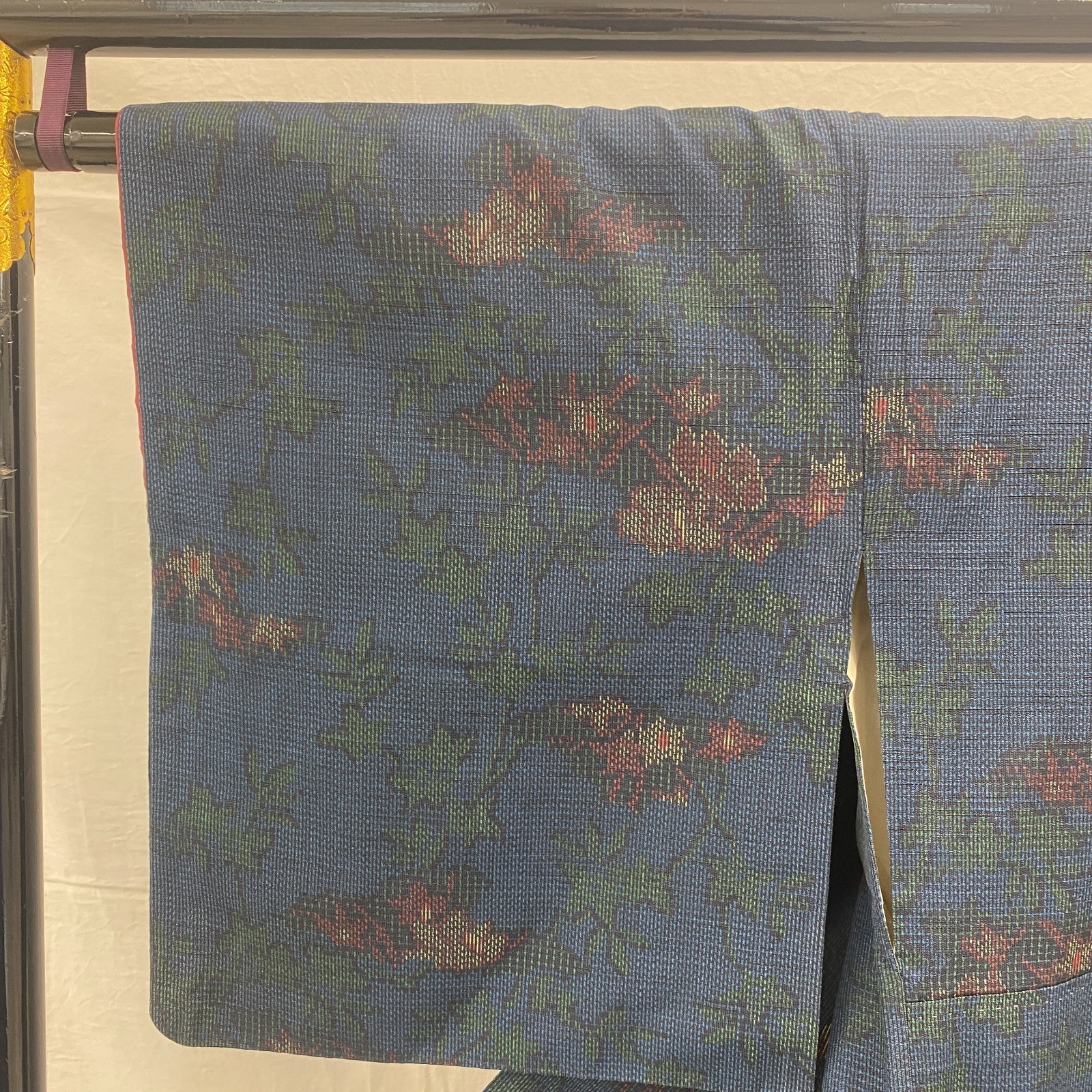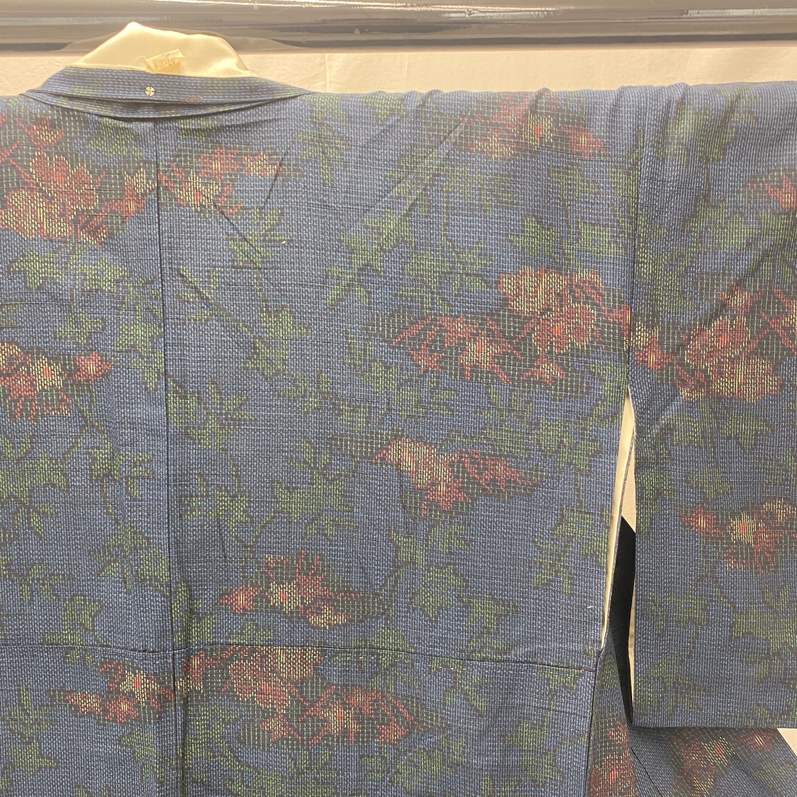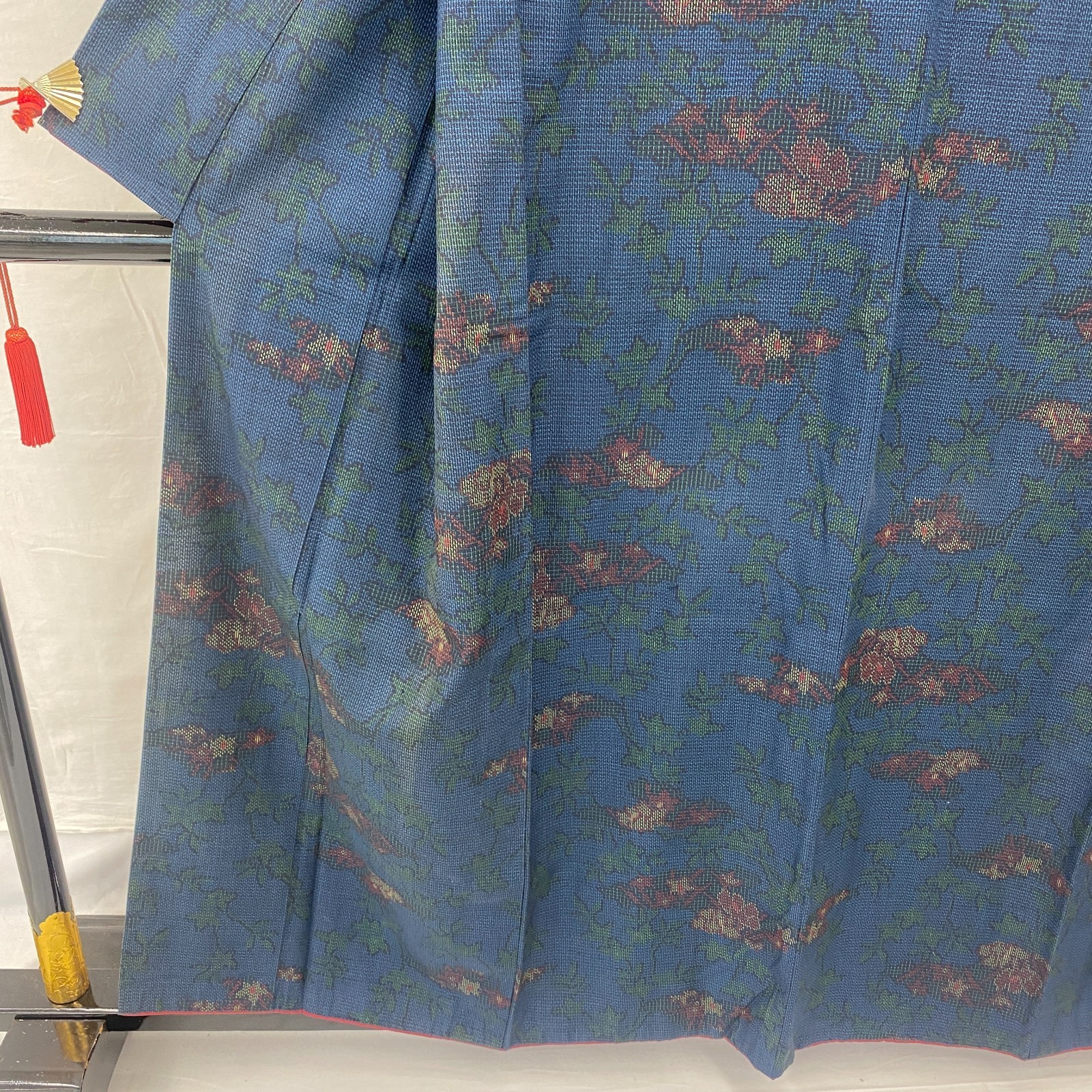 как выглядит Japanese Vintage Kimono Silk Blue Oshima Traditional Authentic Length 61 in фото