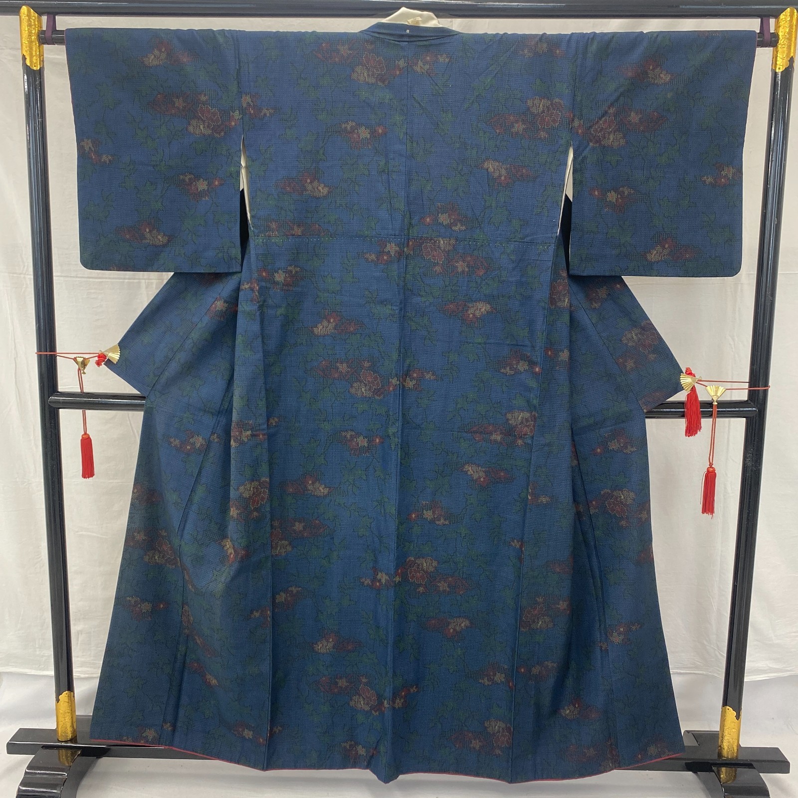 Japanese Vintage Kimono Silk Blue Oshima Traditional Authentic Length 61 in
