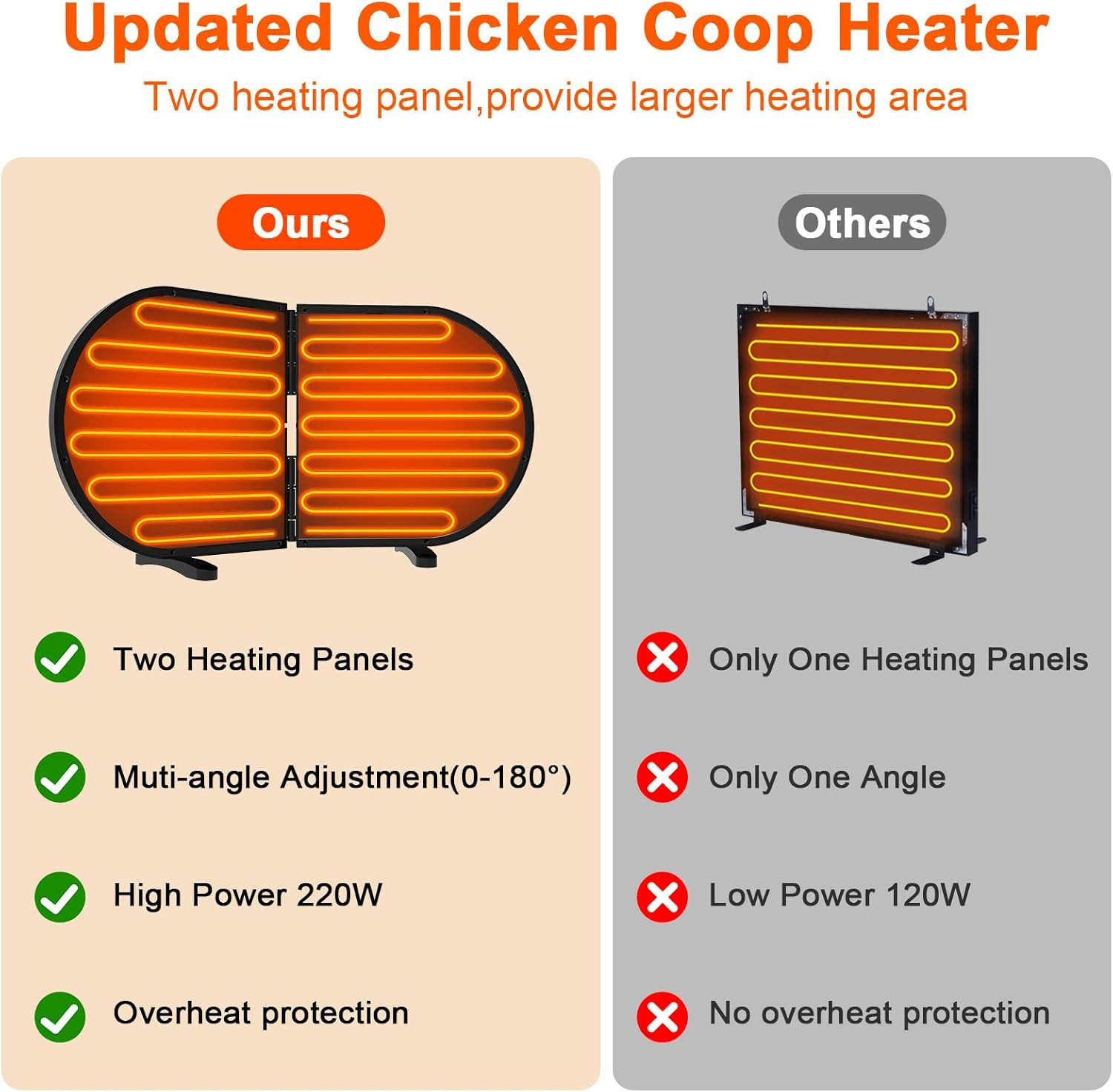 Chicken Coop Heater for Winter, 220W Foldable Flat-Panel Radiant Heater for