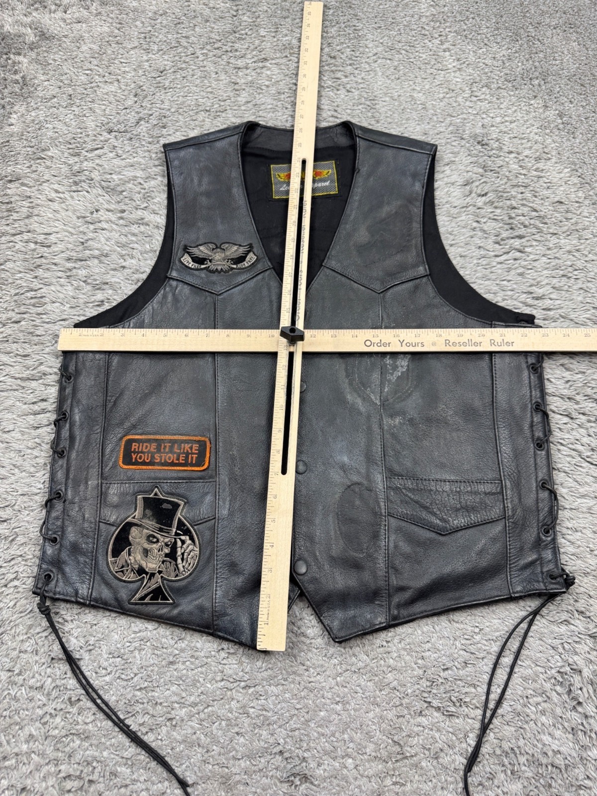 UNIK Leather Vest Men XL Black Gunslinger Anarchy Motorcycle Patch Biker Grudge
