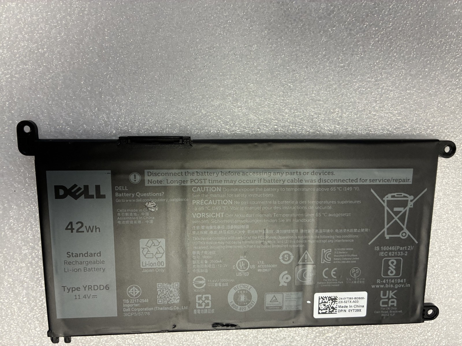 как выглядит Genuine YRDD6 42Wh Battery For Dell Inspiron 3493 3582 3583 3584 7586 3793 US фото