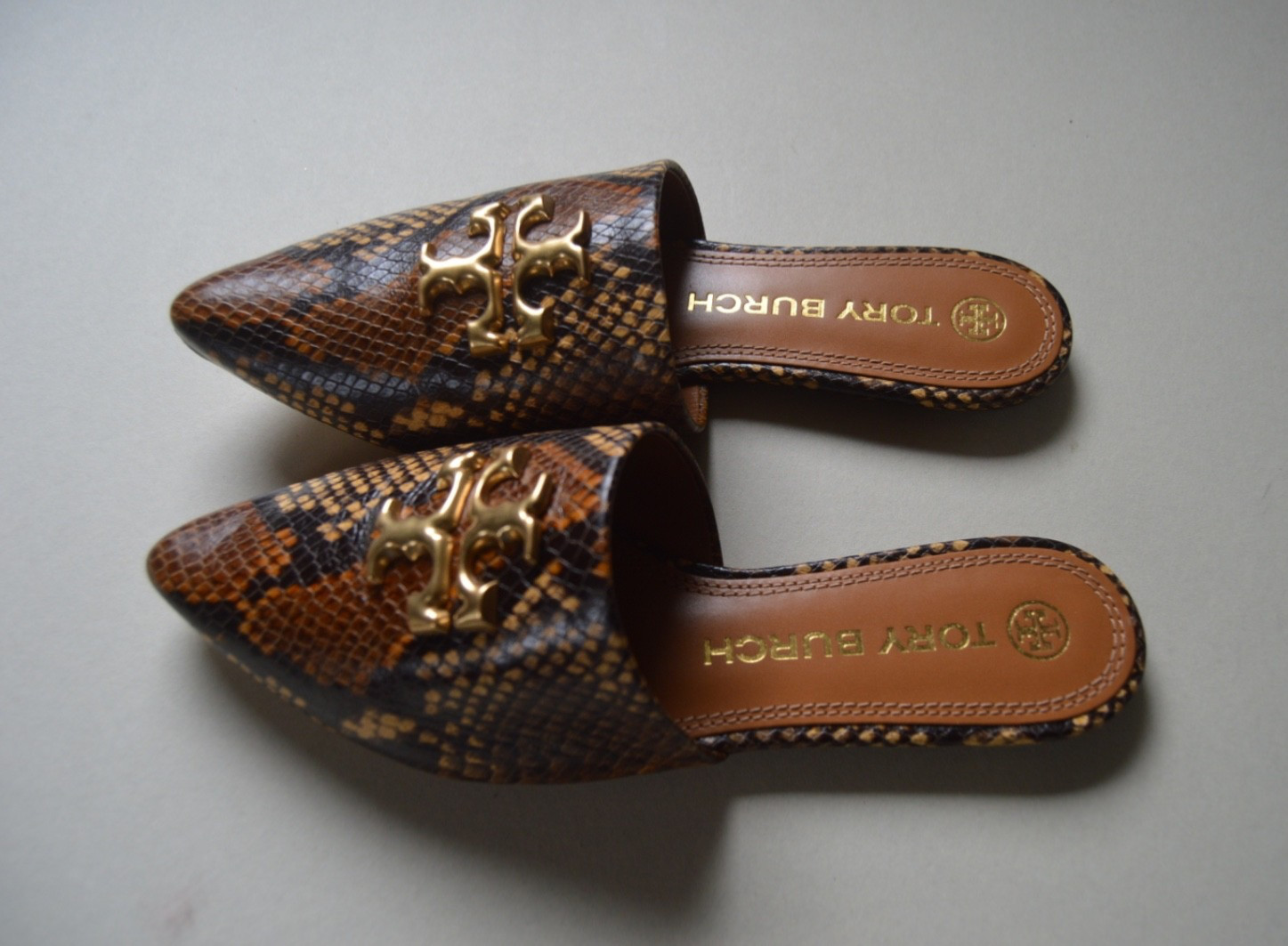 Tory Burch Sz 7.5M Snake print Brown Eleanor Mule Leather Slip on