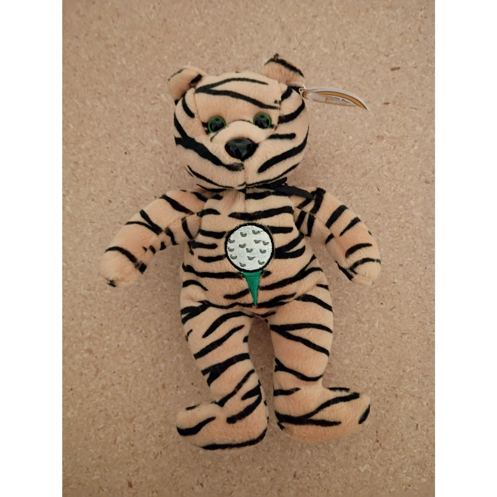 Tiger Woods Celebrity Beanie Bear Plush Tiger-Stripe w/Golf Ball Star 12 1998