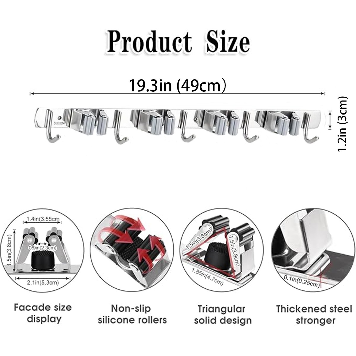 Broom Holder Wall Mount Mop and Broom Hanger Wall Mounted Garage Storage Rack