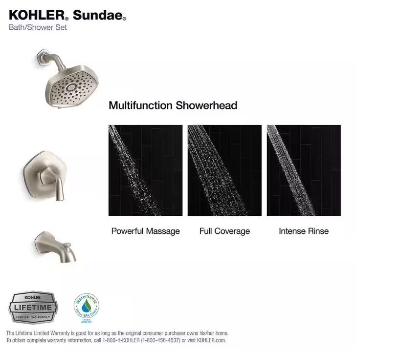 KOHLER Sundae Single-Handle 3-Spray Tub and Shower Faucet In Brushed Nickel