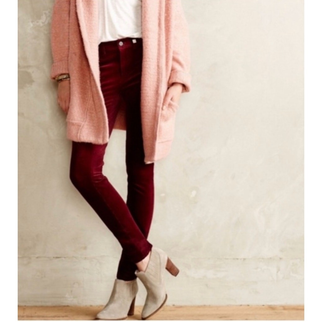 как выглядит Pilcro Letterpress Anthro Velvet Dark Red 29 Stevie Slim Slim Ankle Jeans Pants фото