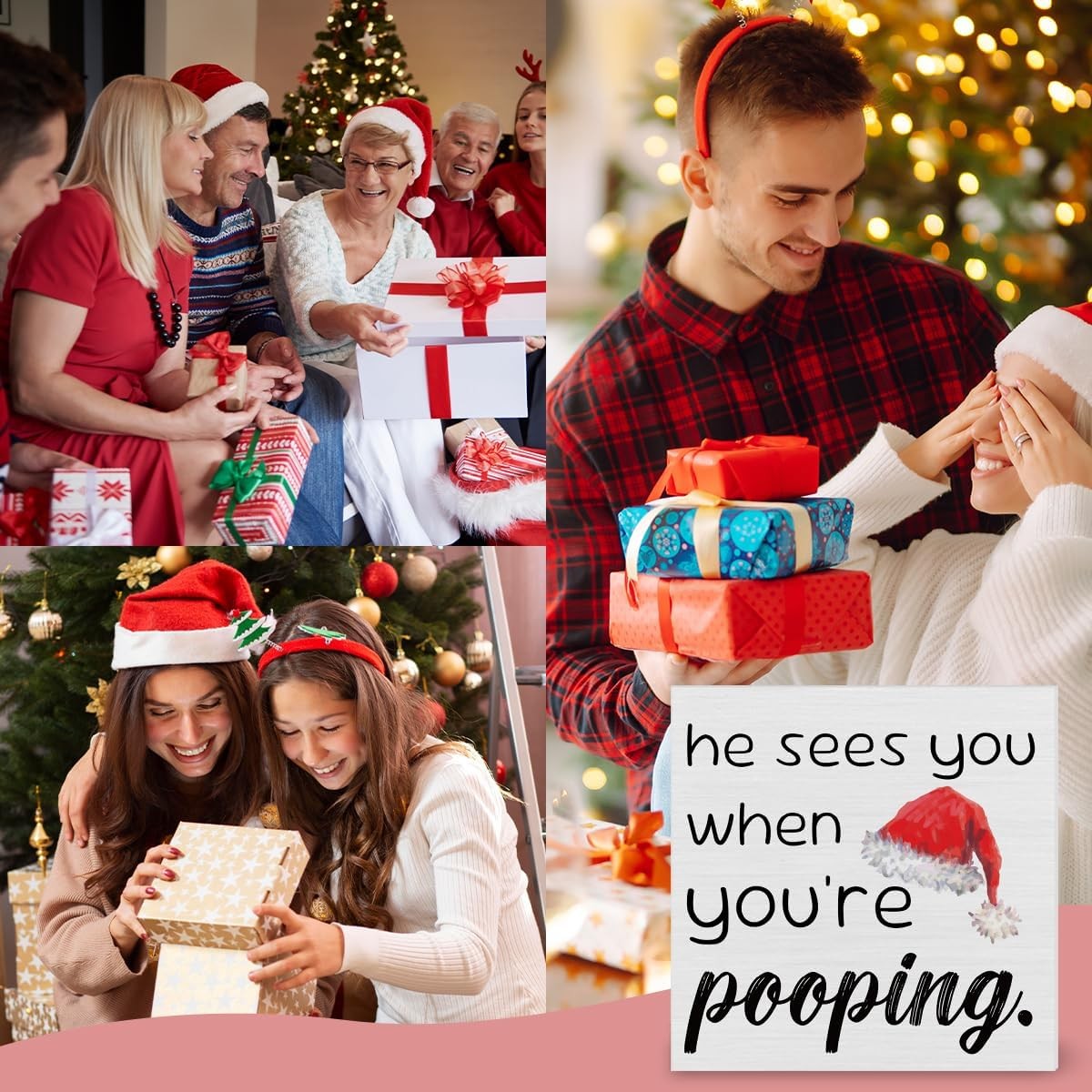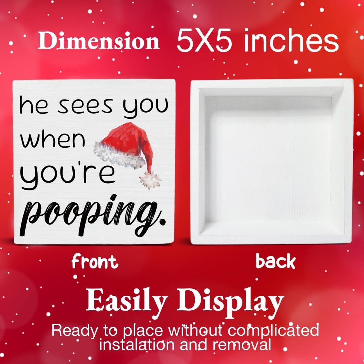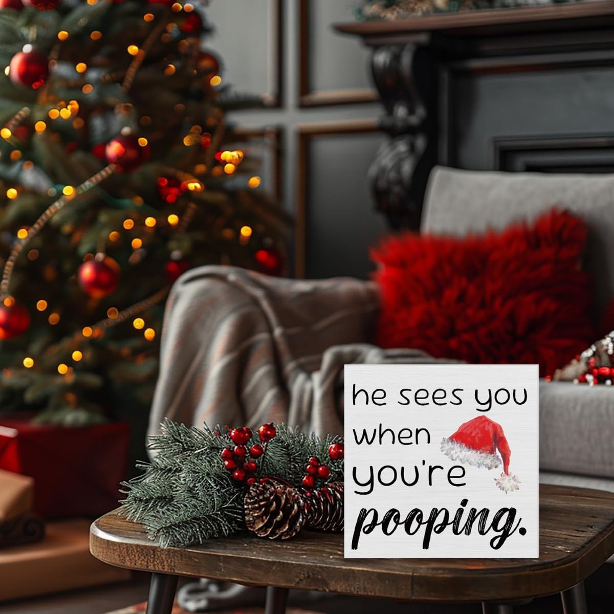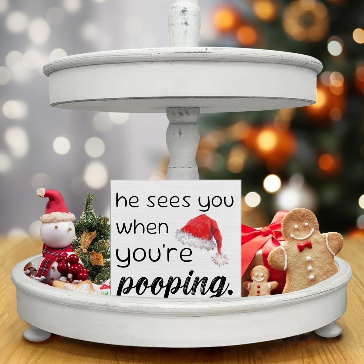 как выглядит Funny Christmas Decor Wooden Sign He Sees You When Youre Pooping 5x5" фото