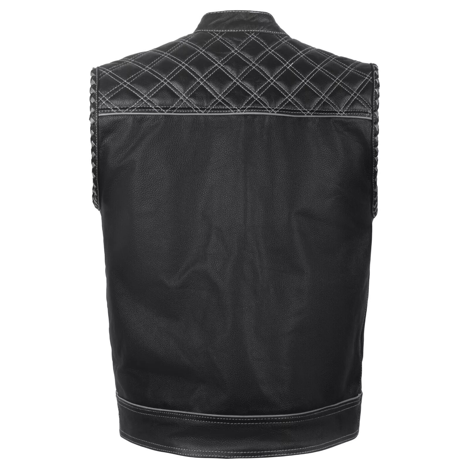 Men's Black Leather Vest Diamond Motorbike Motorcycle Concealed Waistcoat White