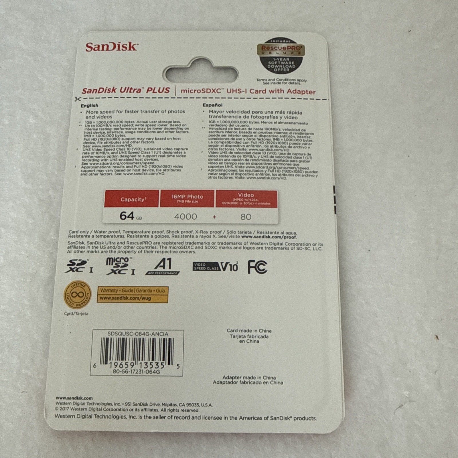 как выглядит Sandisk Ultra PLUS 64GB MicroSDXC UHS-I Card with Adapter 100MB/s Class 10 U1 A1 фото