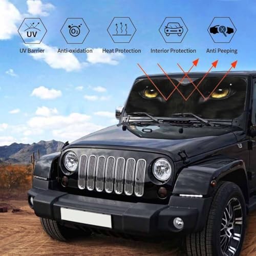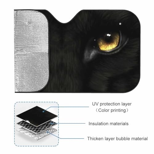 Front Windshield Sun Shade Accordion Folding Auto Sunshade Small Panther Eyes