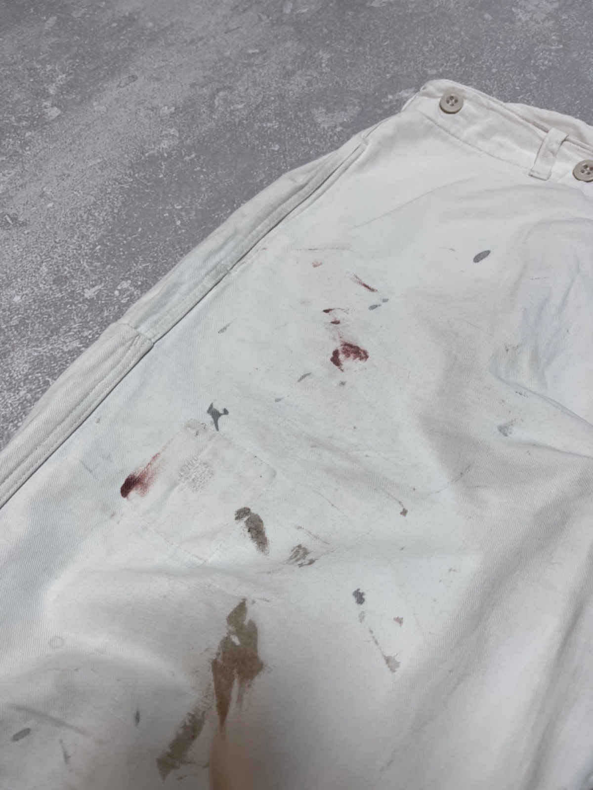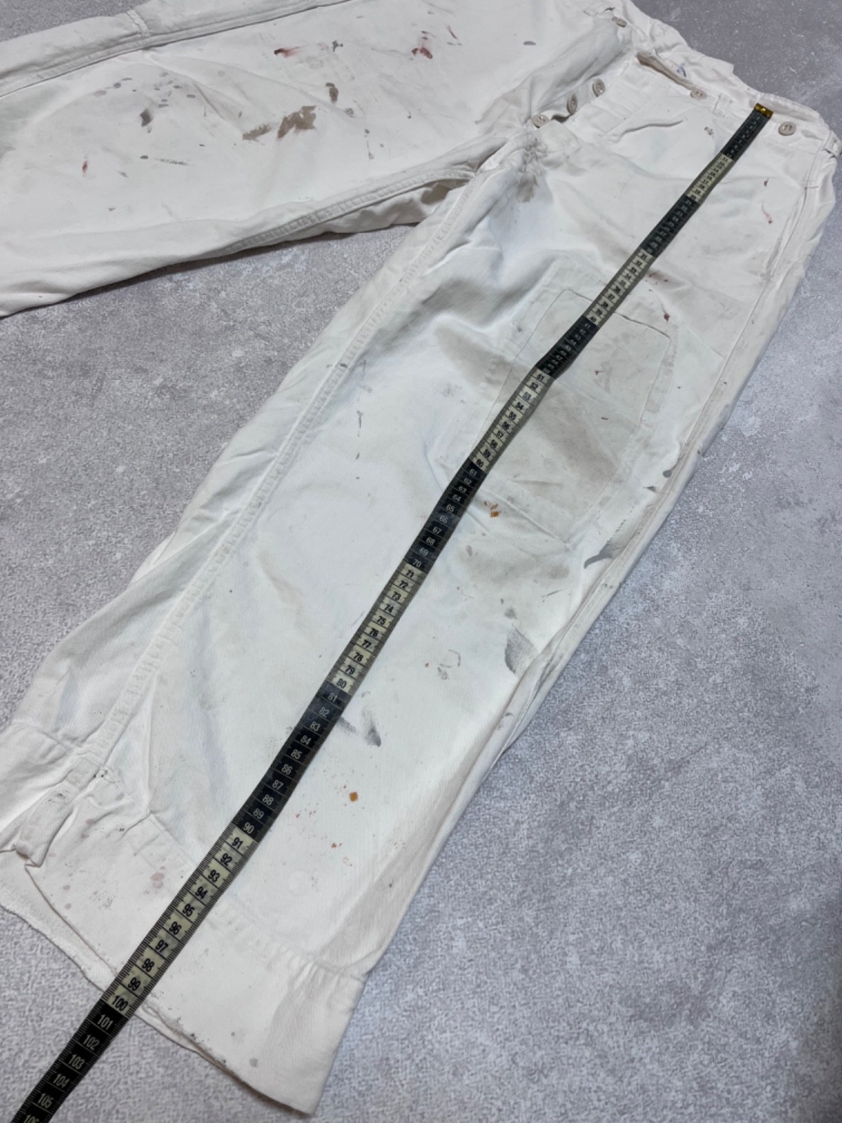 как выглядит Rare French 1950s Faded Repaired White Cotton Twill Work Chore Pants 50 фото