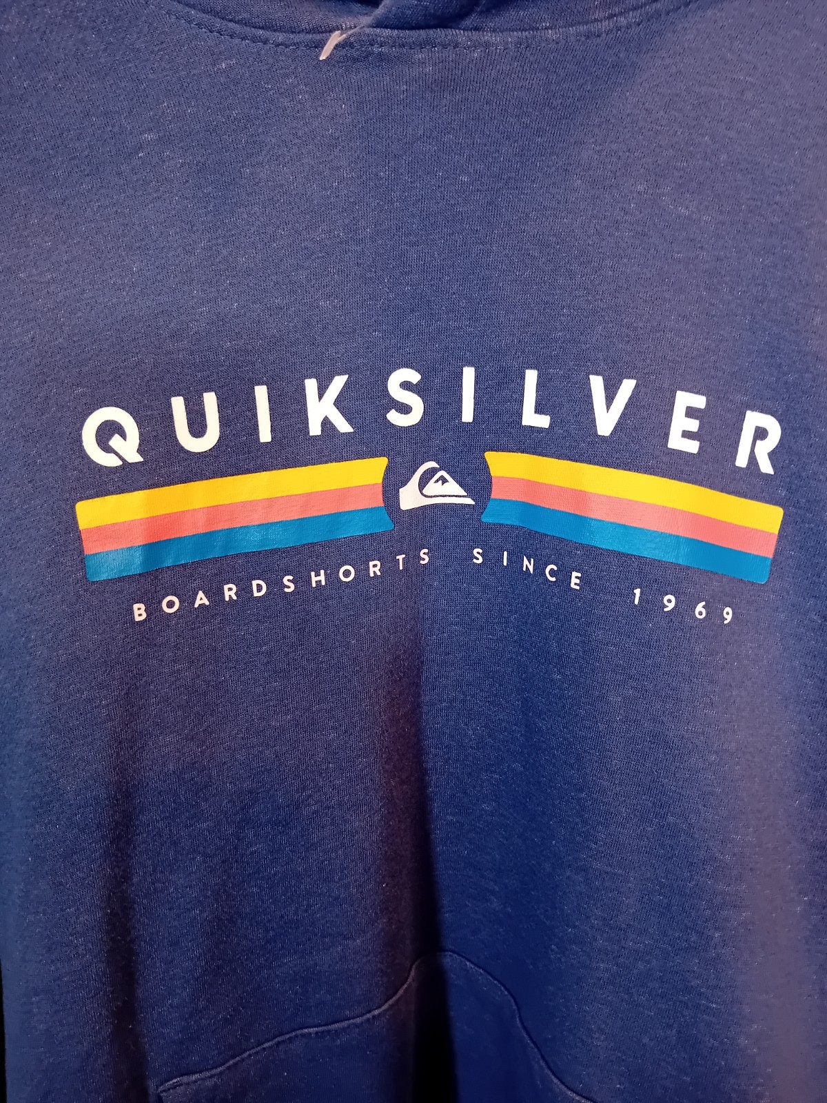 NWT Quicksilver Men's Big Logo Kangaroo Pocket Pullover Hoodie L Navy Heather