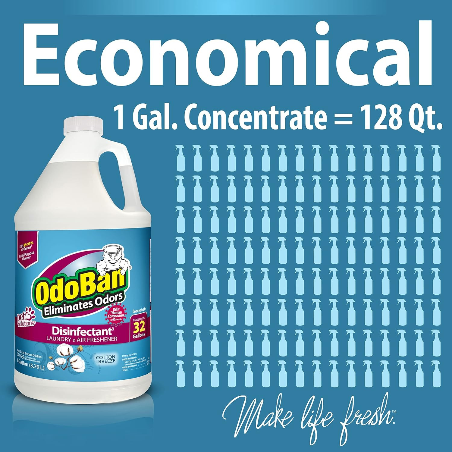 Odoban Disinfectant Concentrate and Odor Eliminator, Made in the USA, Cotton Bre