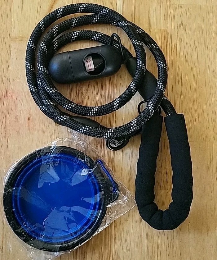 как выглядит Large Dogs Heavy Duty Leash 5 FT w/ Padded Handle, Water Bowl Poop Bag Capsule фото