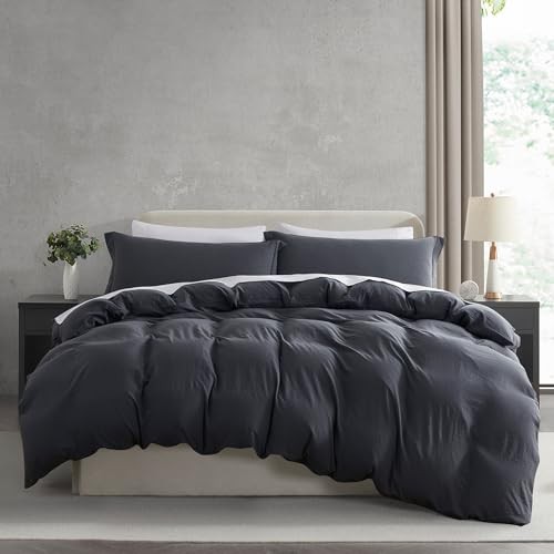 Duvet Cover Set - Soft Prewashed Dark Grey Full 08 - Dark Grey No Comforter