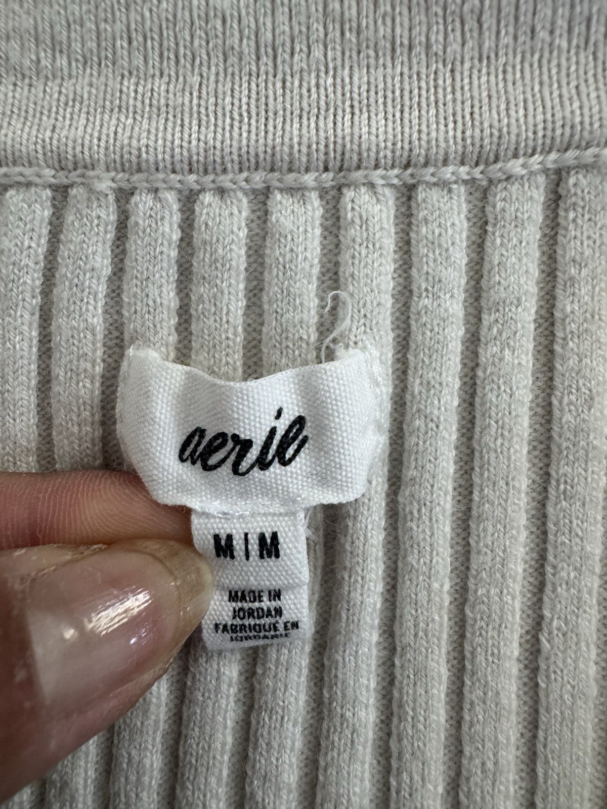 Aerie Cream Ribbed Collared Crop Top Cardigan Button Up Medium