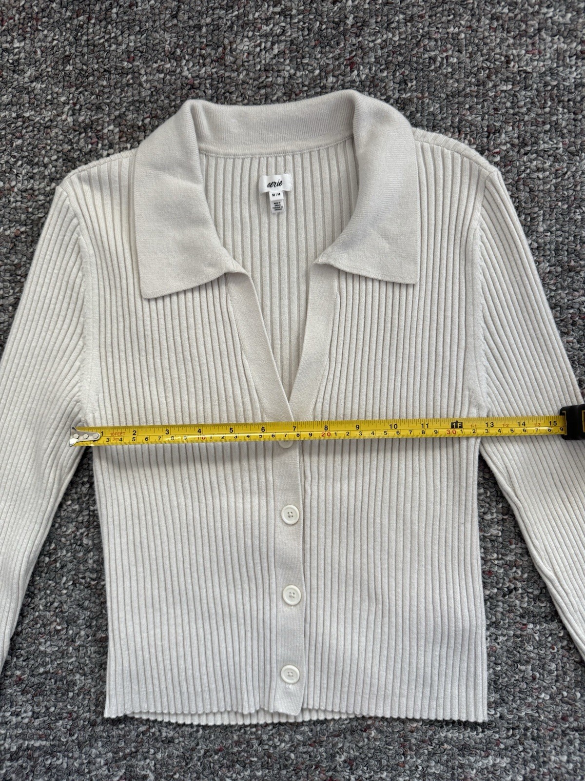 как выглядит Aerie Cream Ribbed Collared Crop Top Cardigan Button Up Medium фото