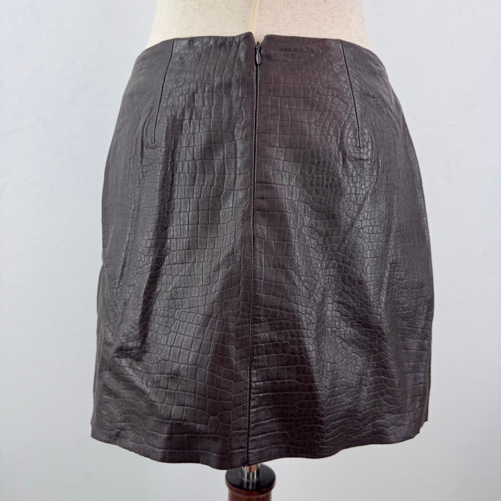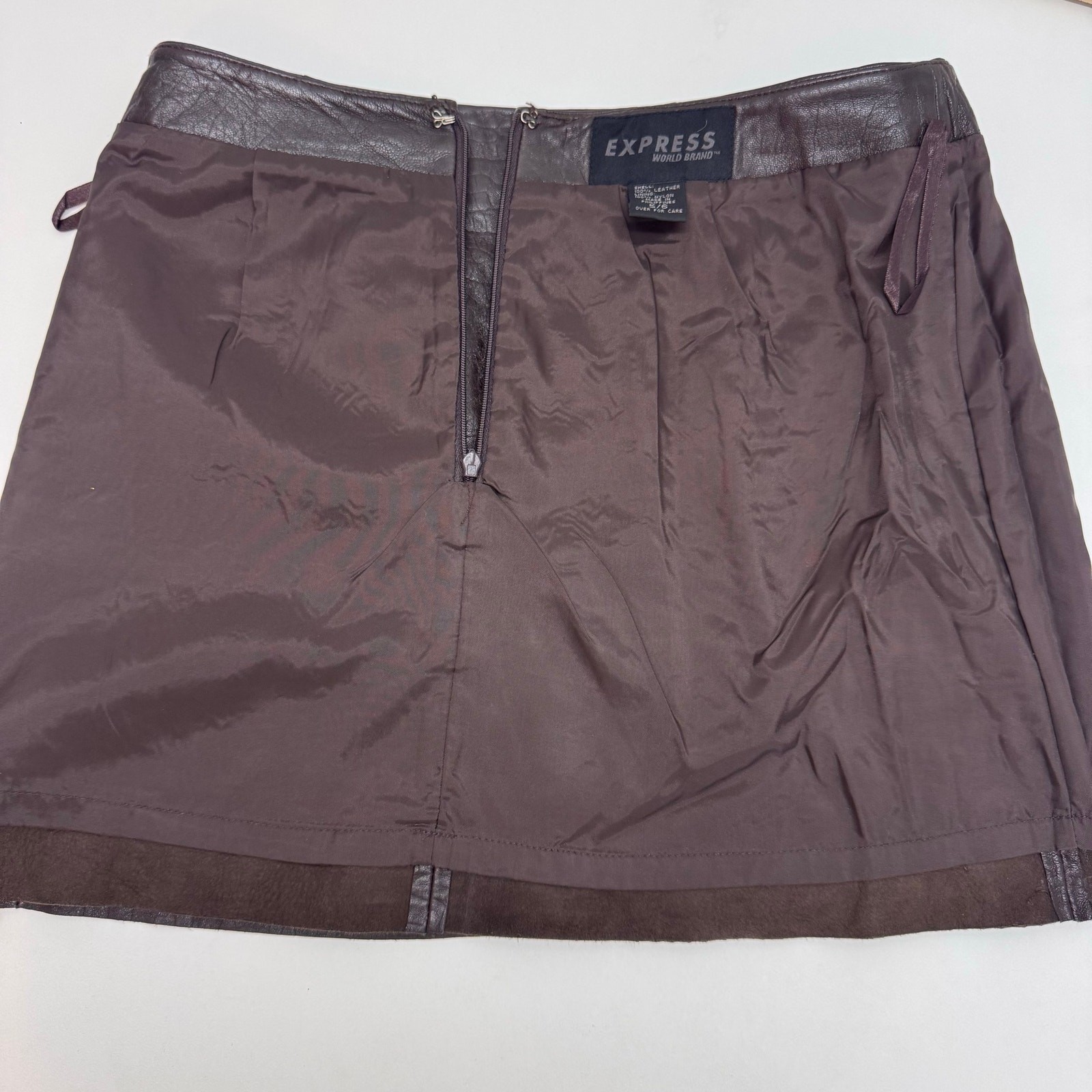 Vintage Express Brown Embossed Leather Mini Skirt sz 5/6 Retro Y2K Coquette Chic