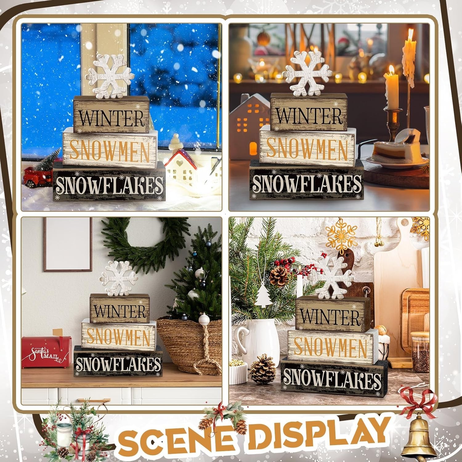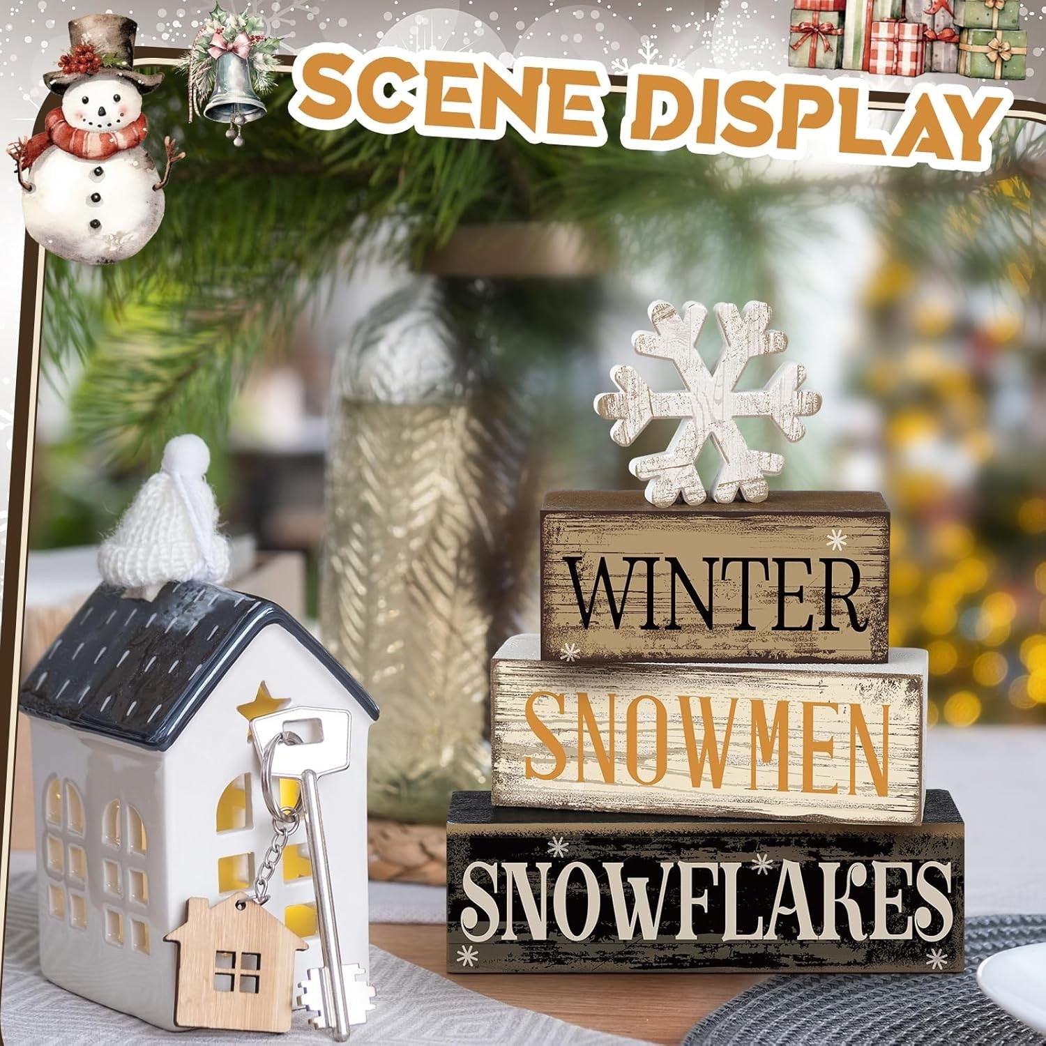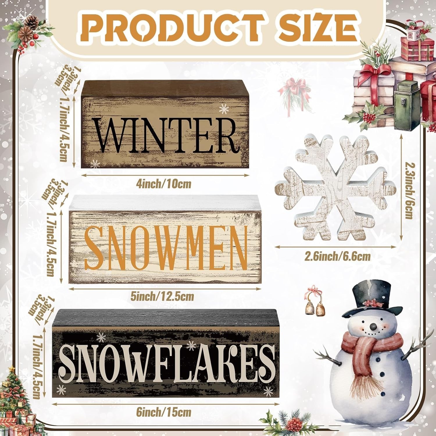 4-Piece Rustic Wooden Snowflake Christmas Table Decor for Elegant Winter Spaces