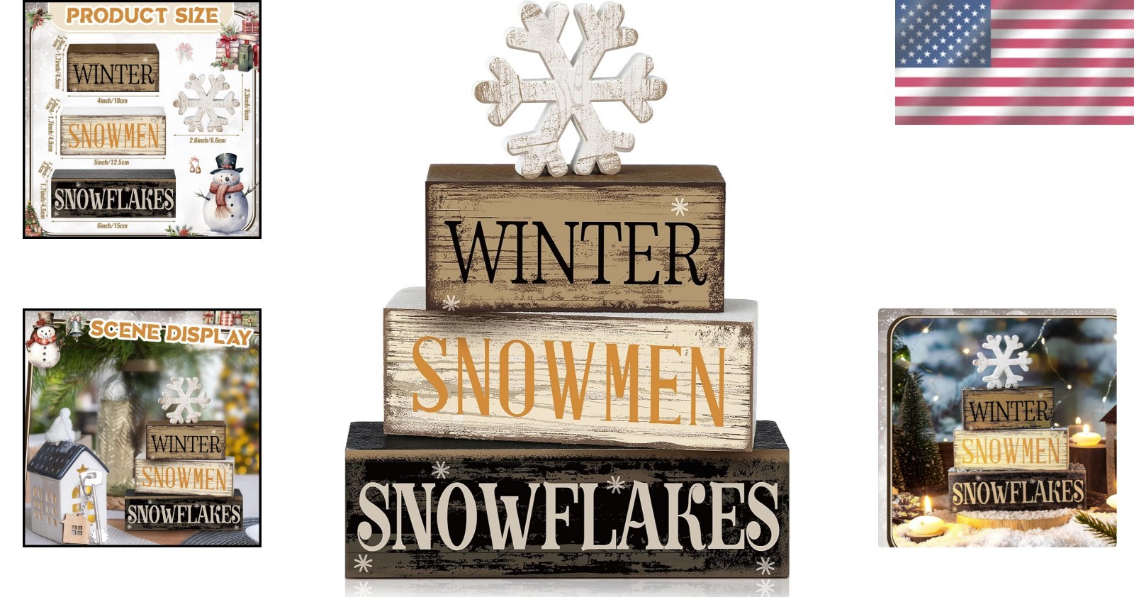 как выглядит 4-Piece Rustic Wooden Snowflake Christmas Table Decor for Elegant Winter Spaces фото