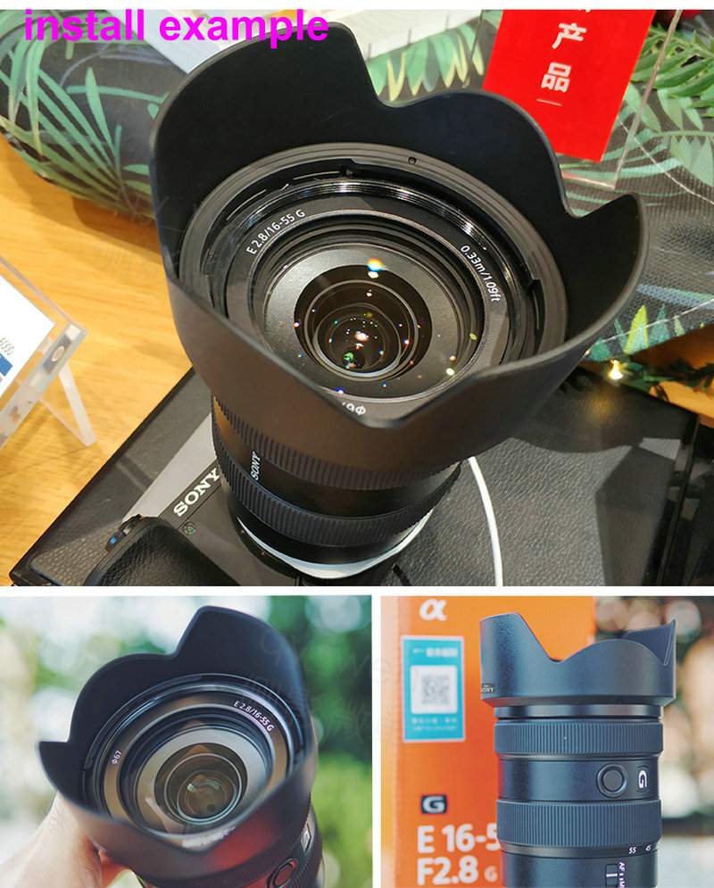 как выглядит 67mm Camera Petal Lens Hood for Sony E 16-55mm f2.8 G SEL1655G Copy ALC-SH161 фото
