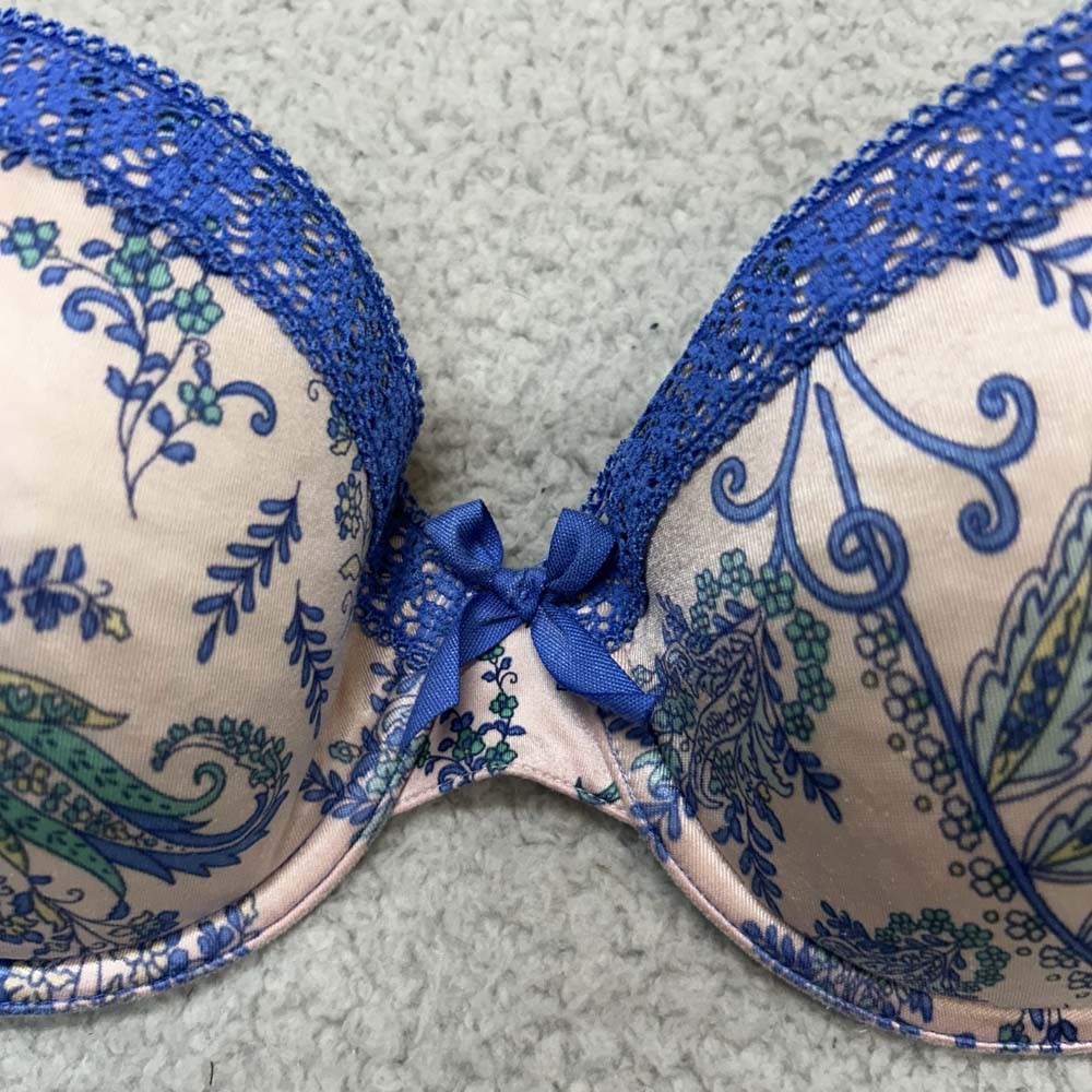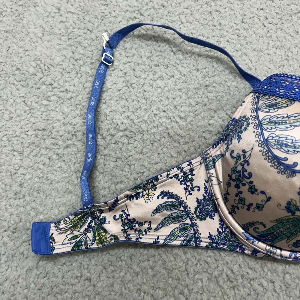 как выглядит Aerie Bra 34D Underwire Hannah Bra Blue Lace Trim Floral фото