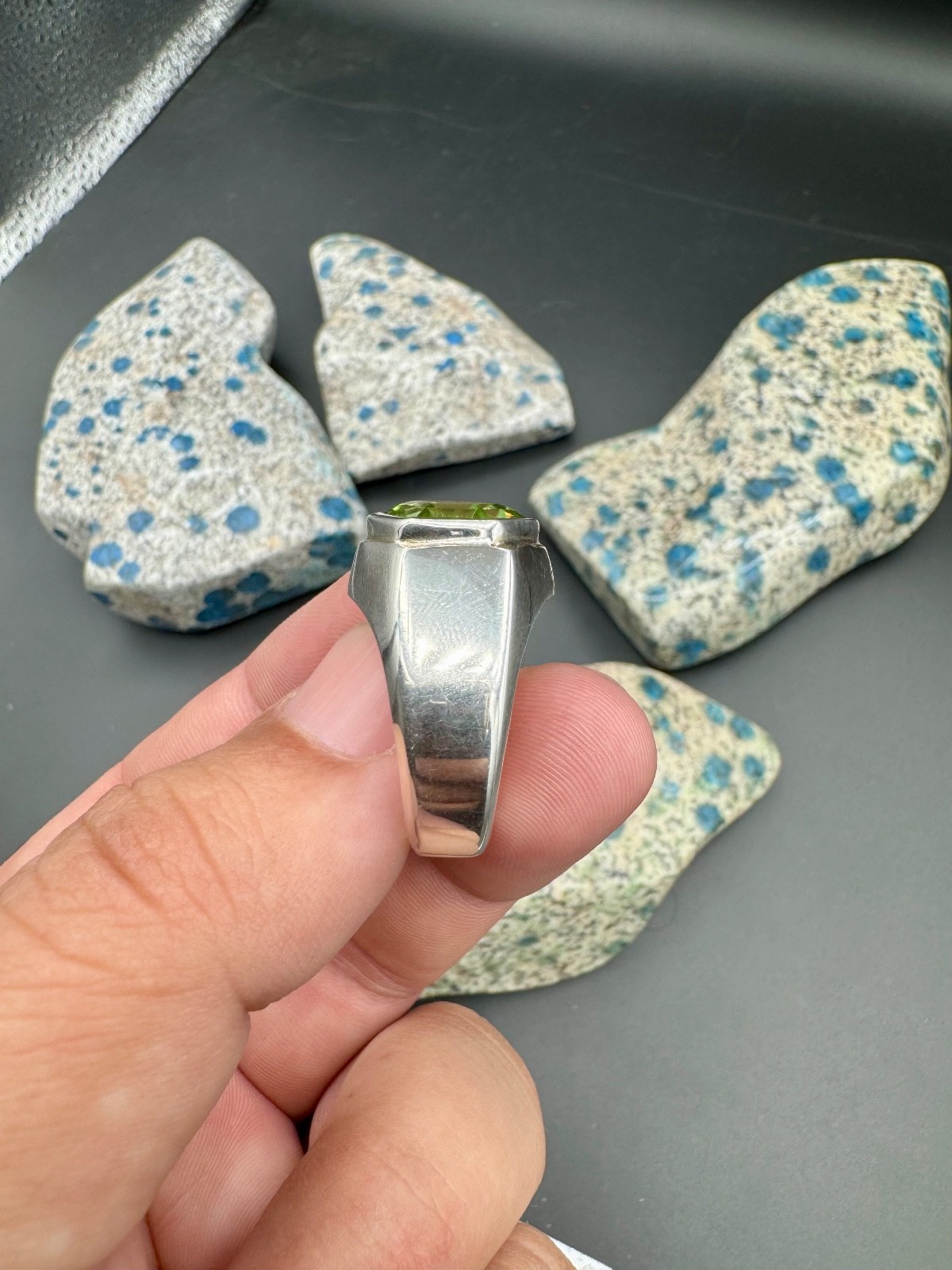 как выглядит Size 10.3 AAA Grade Hexagonal Mint Green Peridot Handmade Silver Ring for Men фото