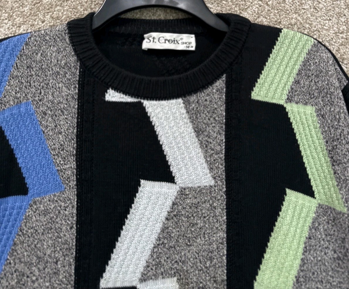 как выглядит Vintage St. Croix Sweater Mens Medium Retro Geometric Cotton Knit Pullover USA фото