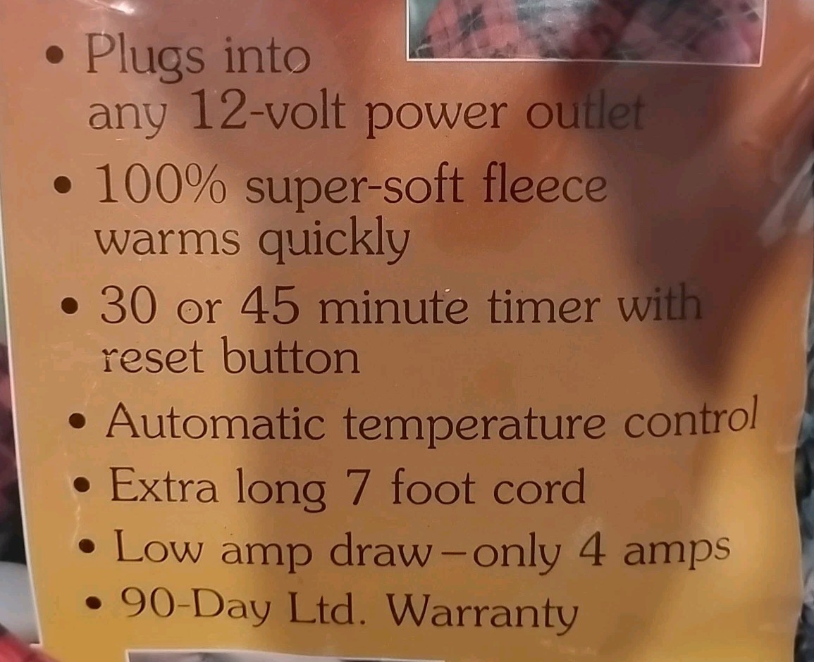 • Car Cozy 2 Heated Blanket 12 Volt Safety Timer Boat Truck RV's Plaid NEW