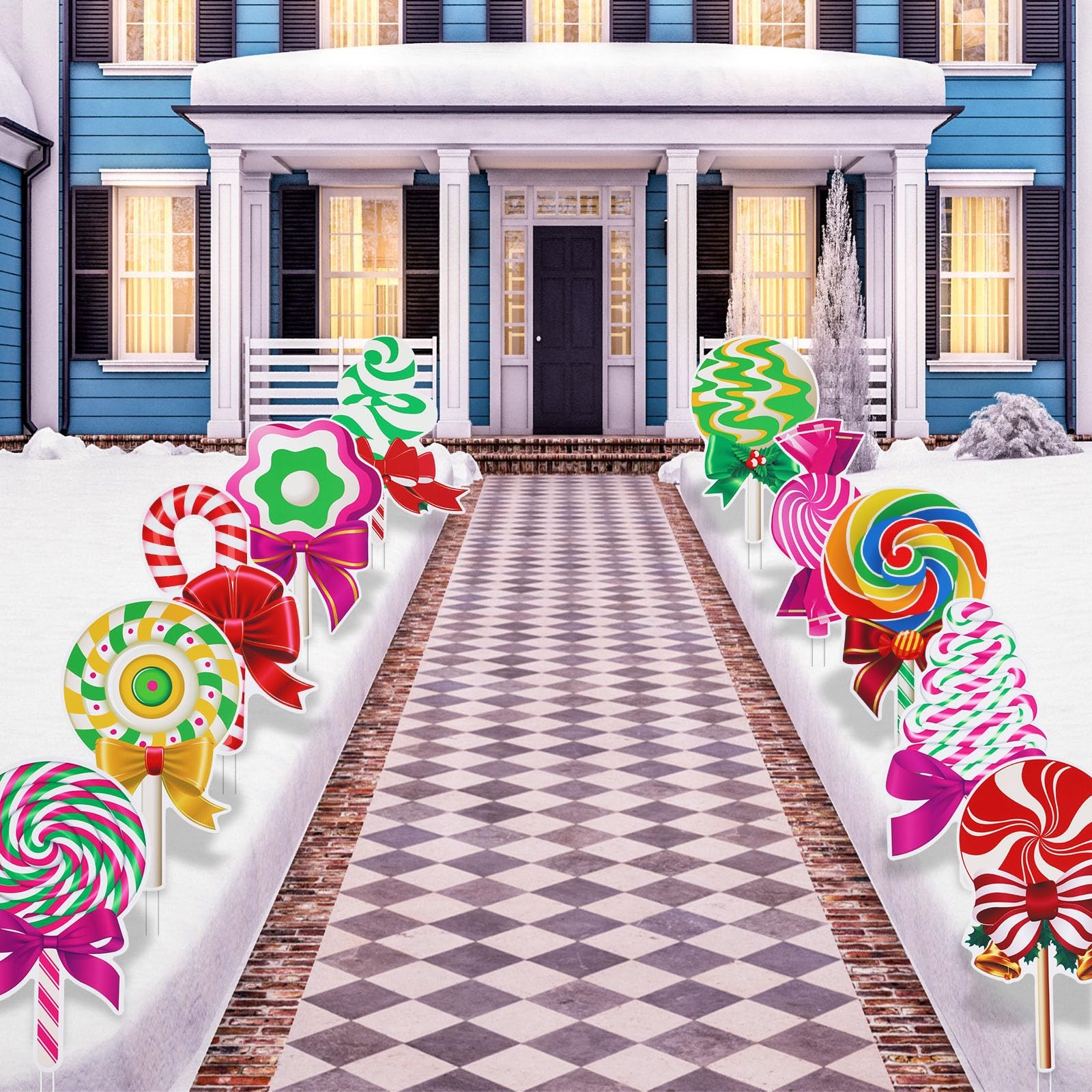 как выглядит 10 Pieces Christmas Candy Decorations Outdoor Yard Signs Plastic Peppermint L... фото