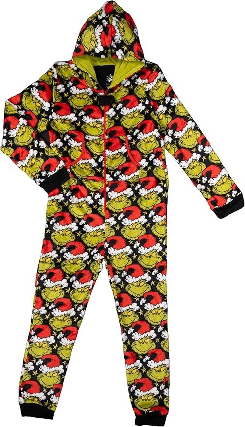 как выглядит Kids Unisex Grinch Santa Hat Holiday Season Jumpsuit Pajamas фото