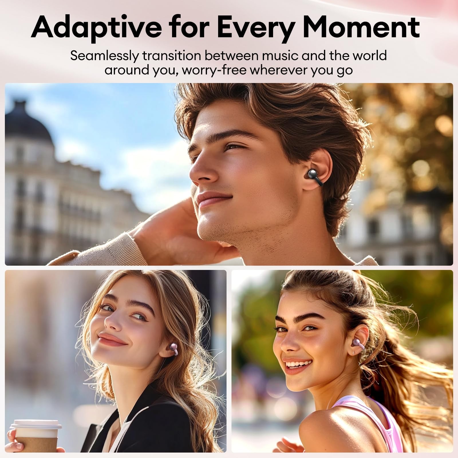 Clip On Open Ear Earbuds Wireless Bluetooth 5.4, Clip On Earbuds with LCD Tou...