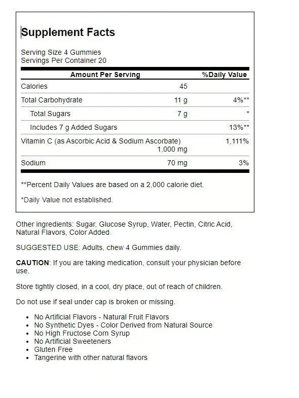 Ingredients: Vitamin C (Ascorbic Acid)