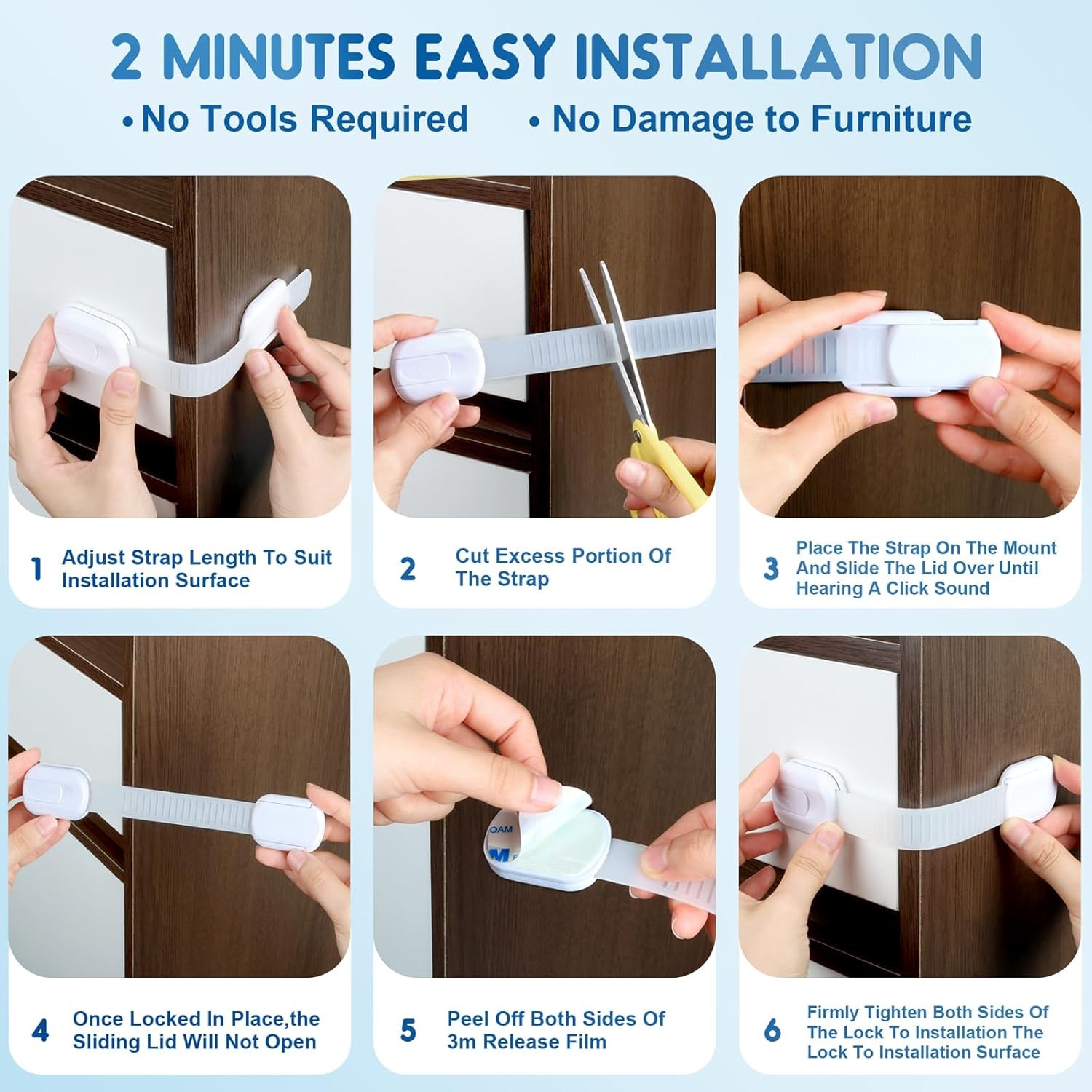 10 Pack Cabinet Locks Baby Proofing, SOGUDE Child Proof Cabinet Locks with 3M