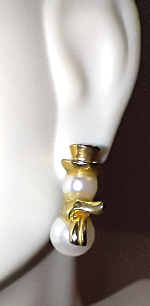 как выглядит Avon Snowman Earring White Faux Pearl Gold Tone Metal Christmas Pierced Vintage фото