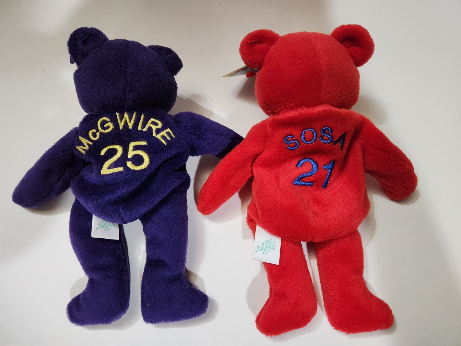 как выглядит Salvinos Bamm Beanos-Purple Bear 25 Mark McGwire, Red Bear 21 Sammy Sosa фото