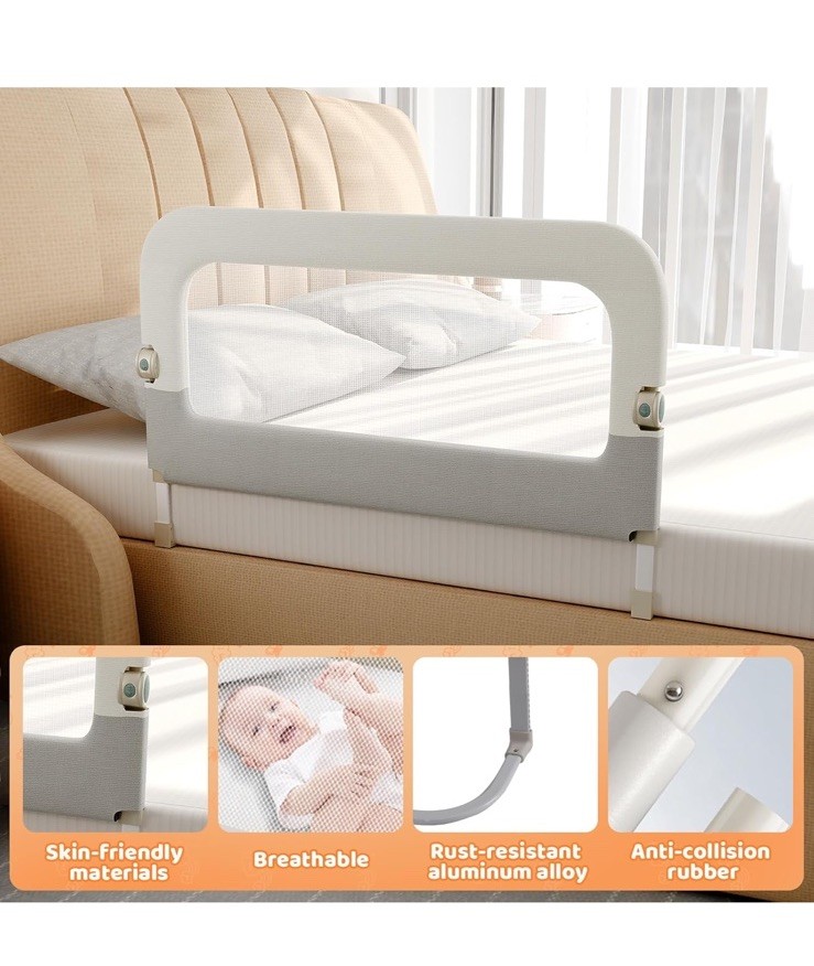 Bed Guard Rail for Toddlers - 32inch Folding up Adjustable Heights Baby Bed