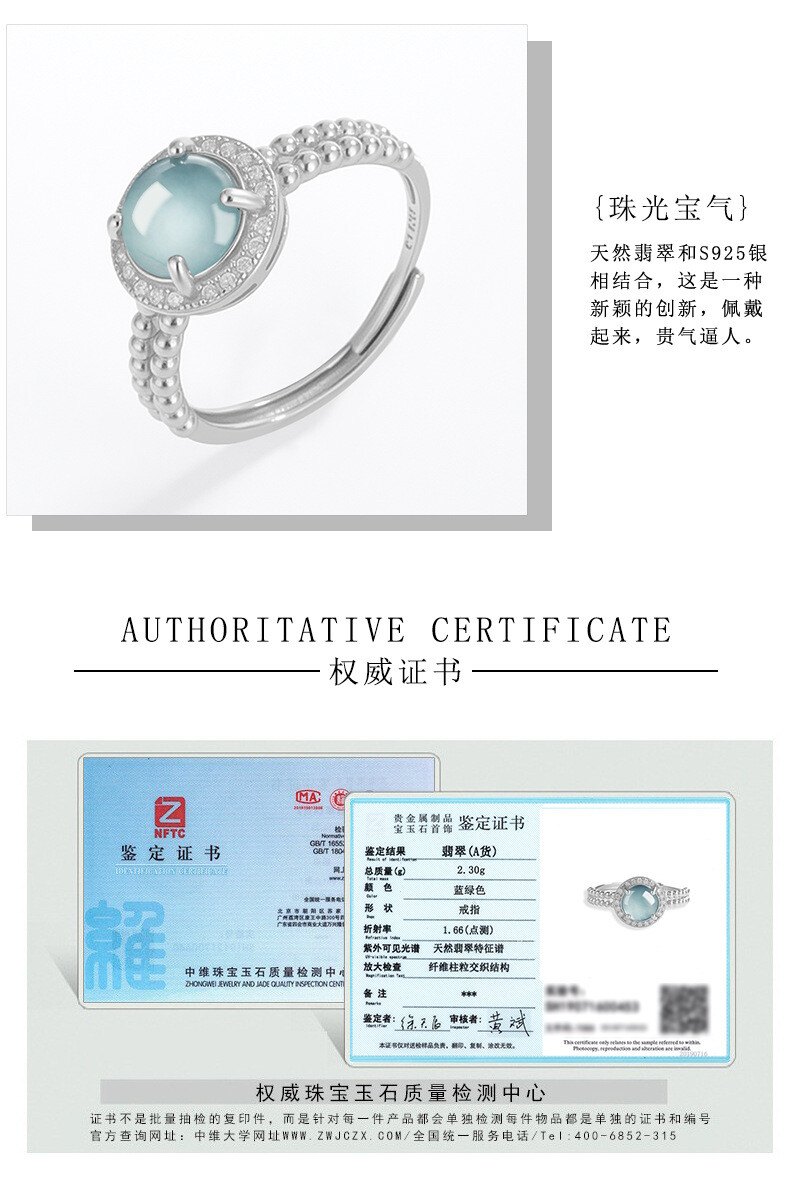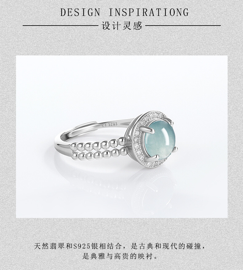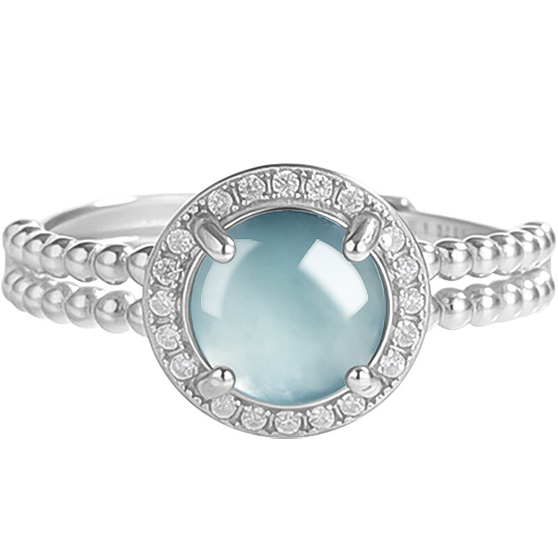 Certified S925 Silver Natural A-grade Jade Blue Water Ring with Adjustable Ring