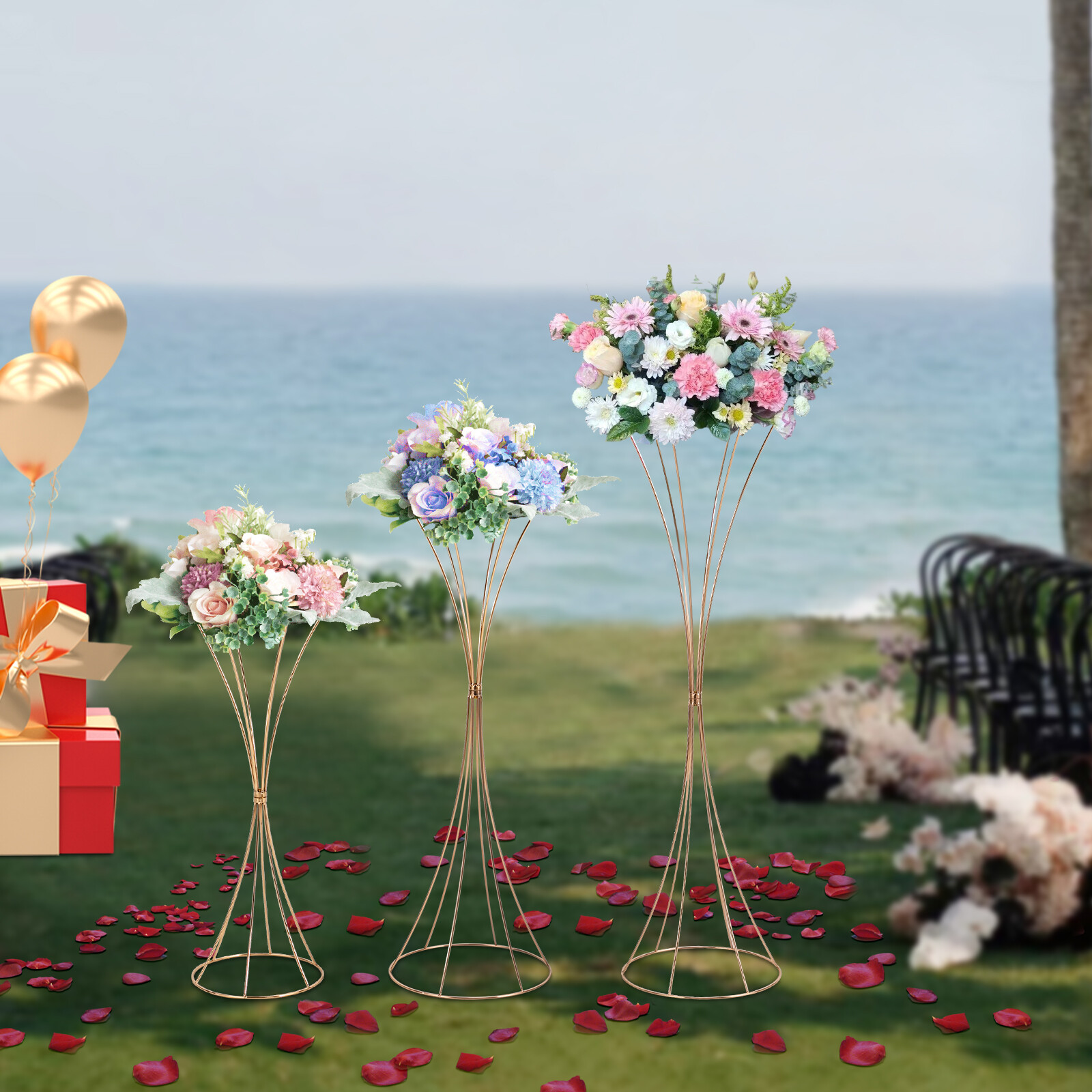 Set of 3 Modern Roadside Flower Stand Table Prop Flower Vessel Flower Stand Gold