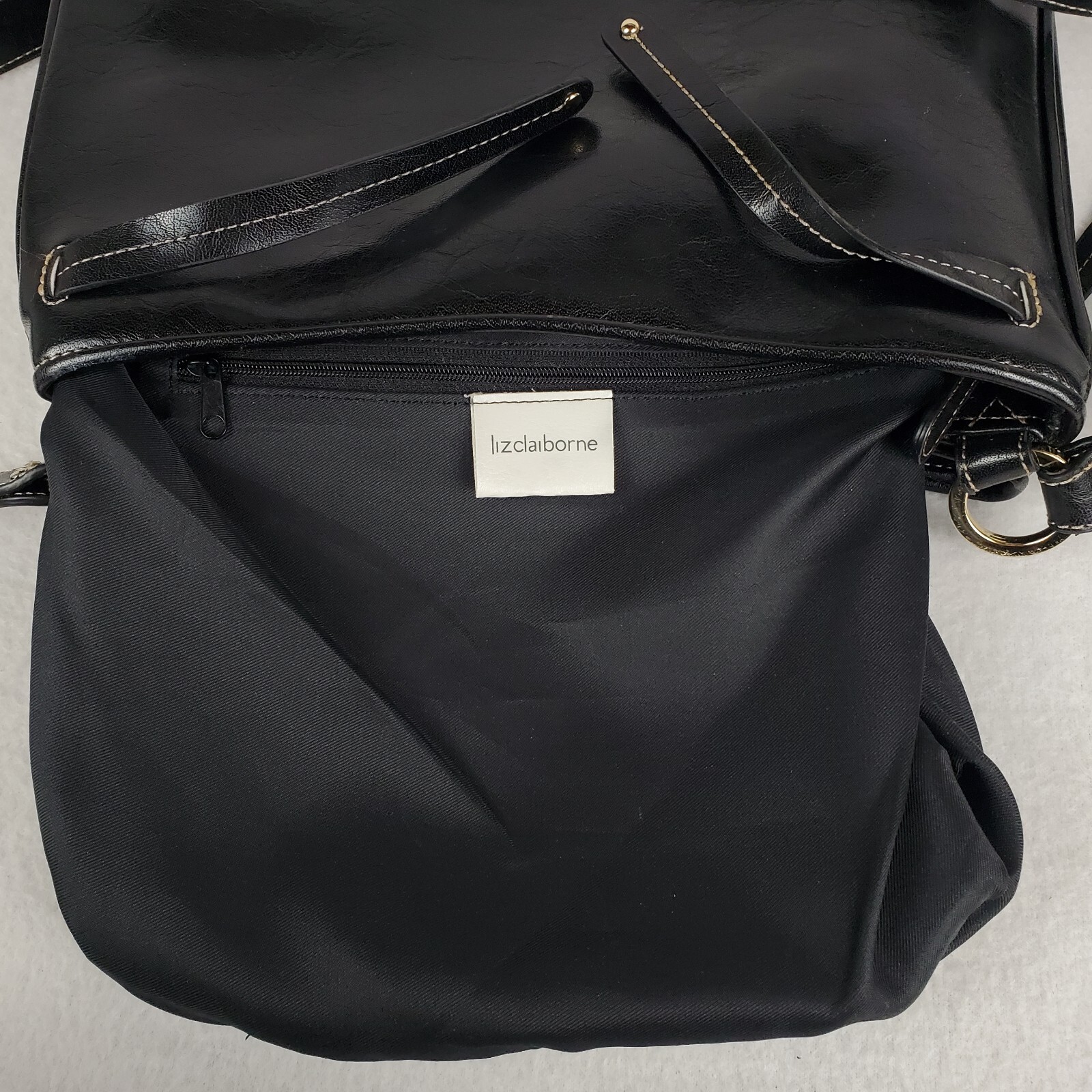 как выглядит LIZ CLAIBORNE Vintage Black Faux Leather Purse With Shoulder Strap фото