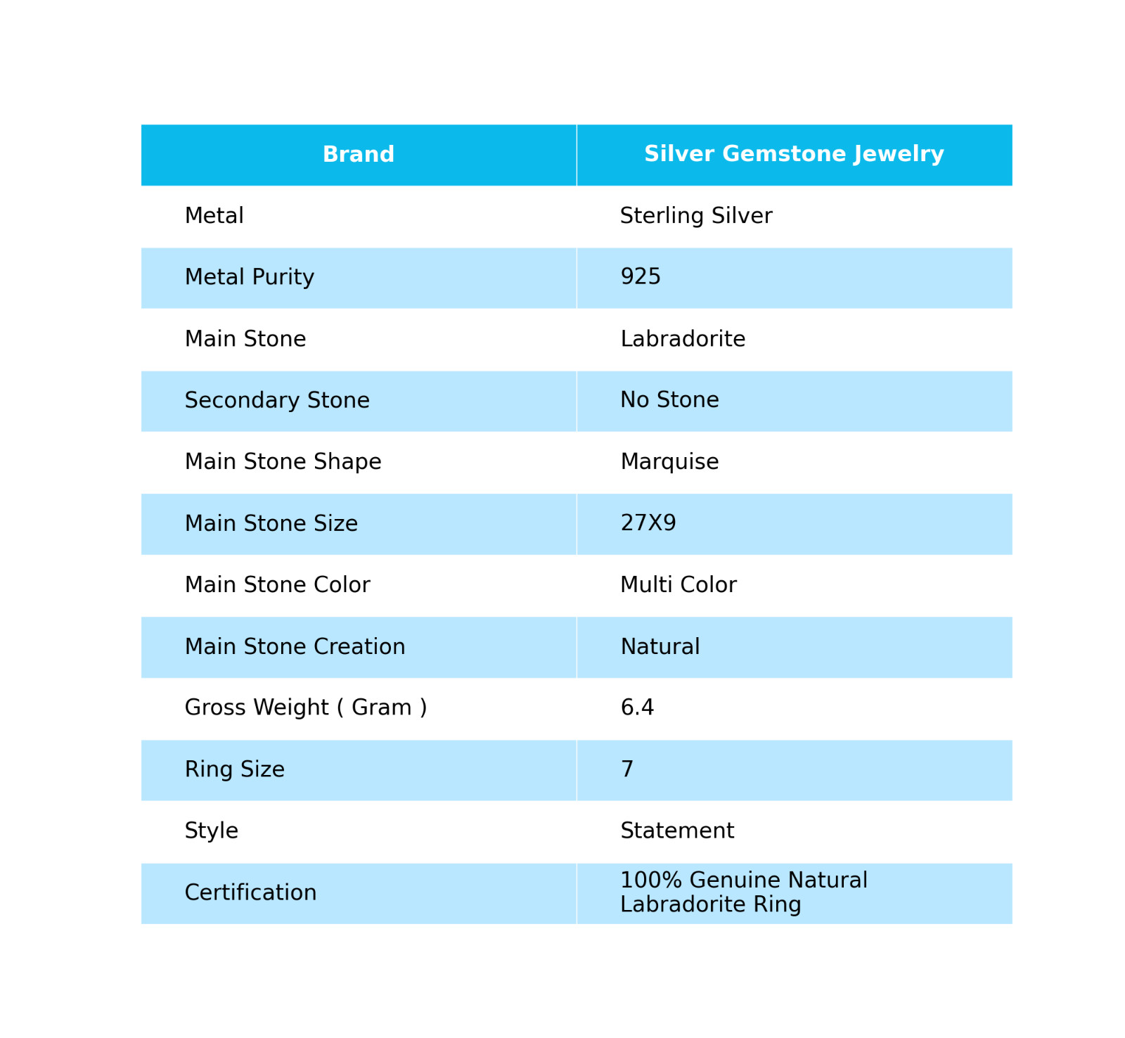 925 Sterling Silver Natural Labradorite Bezel Statement Wife Wedding Ring Size 7