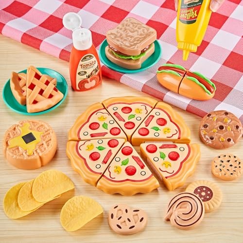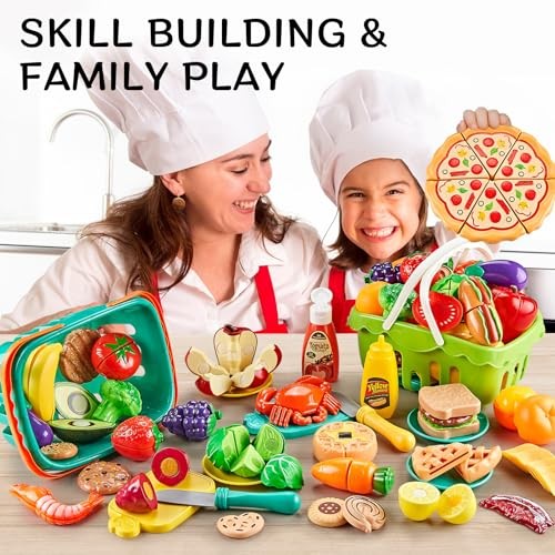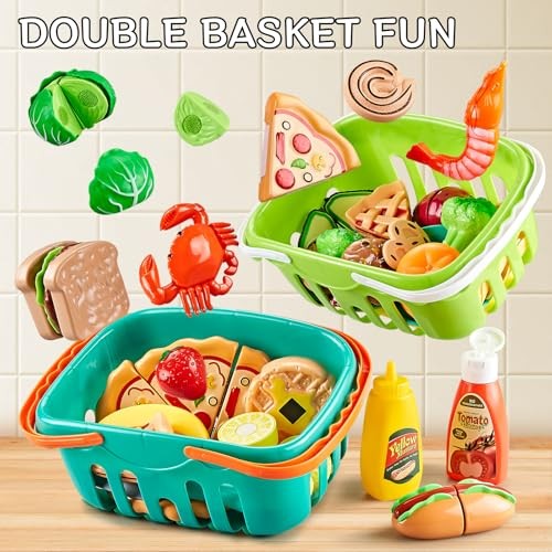 85Pc Pretend Play Food Sets for Kids Kitchen, Cutting toy food with 2 Baskets,