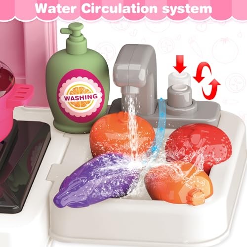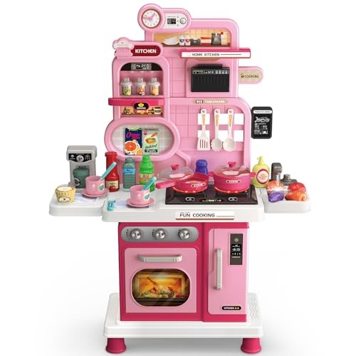 Play Kitchen Set, Kids Kitchen Playset with Realistic Sound Light, Cooking