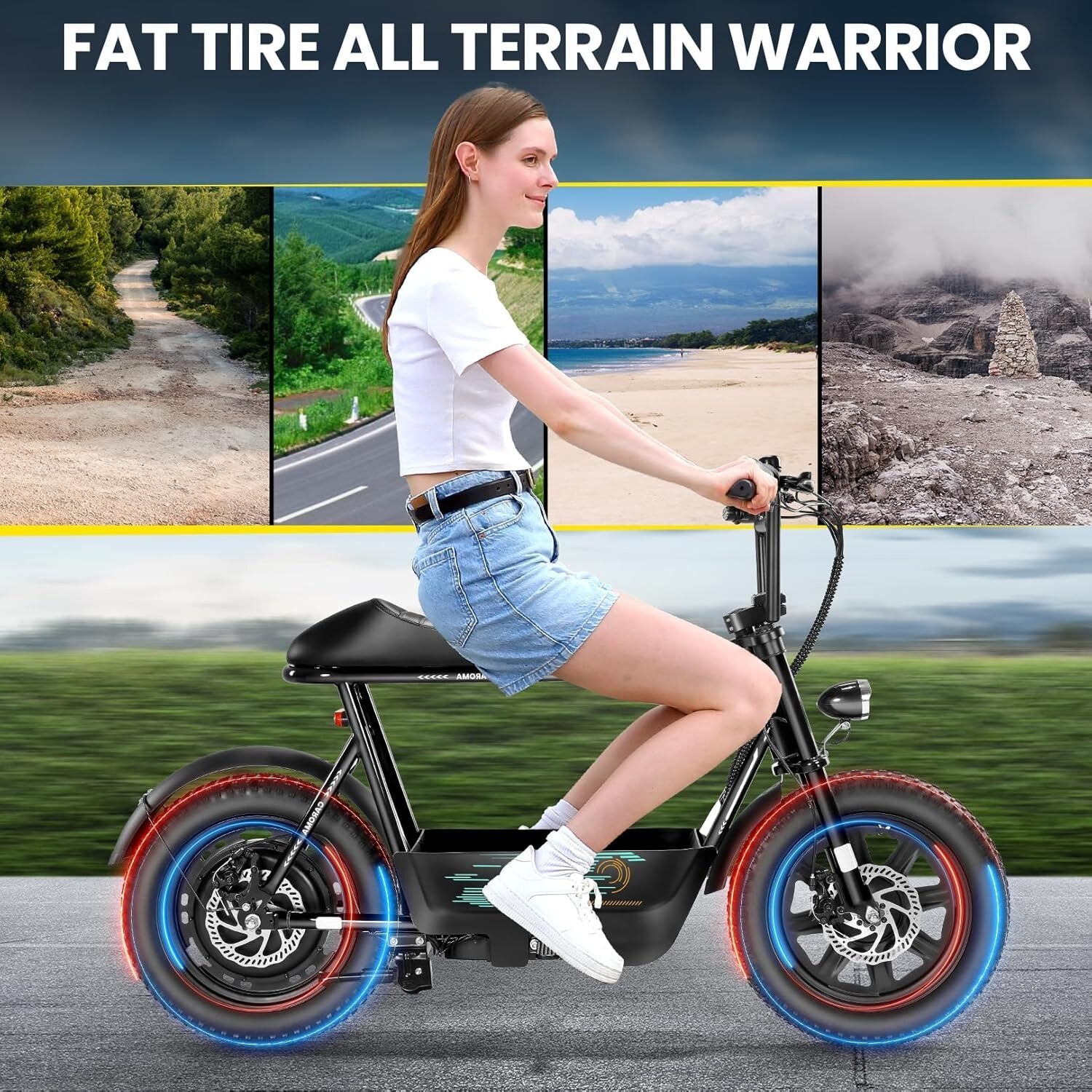 Peak 1200W Electric Scooter w/ Seat,16 Fat Tire Motorcycle Commuting E-Scooter