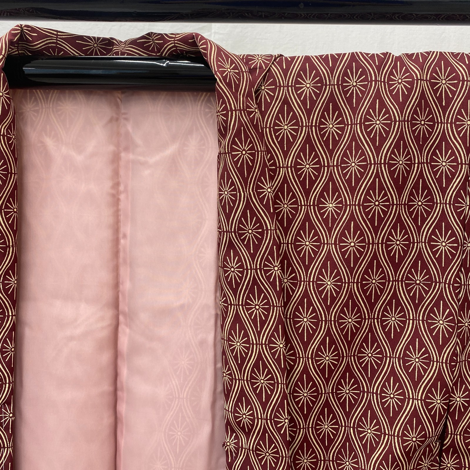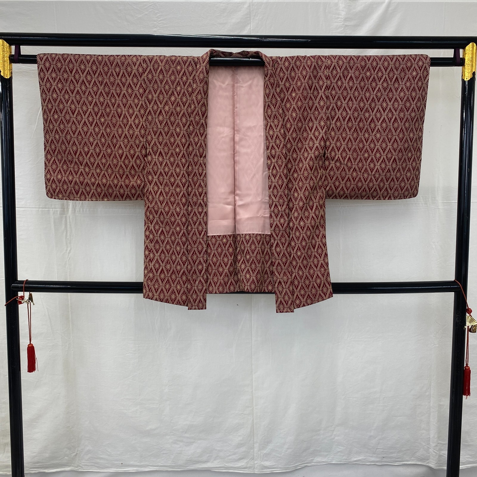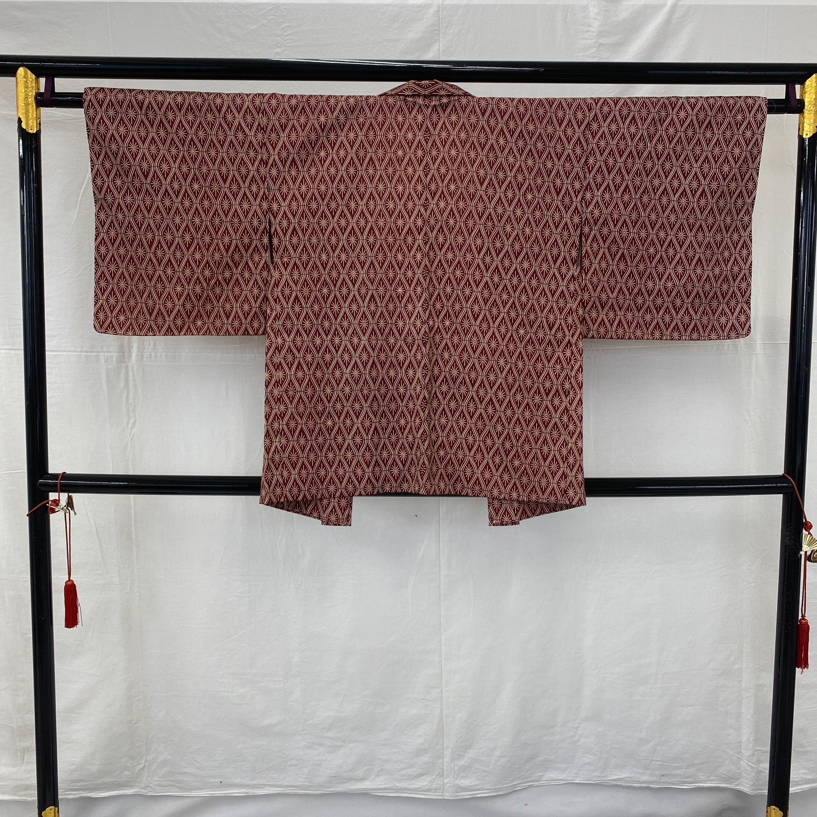 Japanese Vintage Kimono Haori Jacket Polyester Red Traditional Authentic 31 in